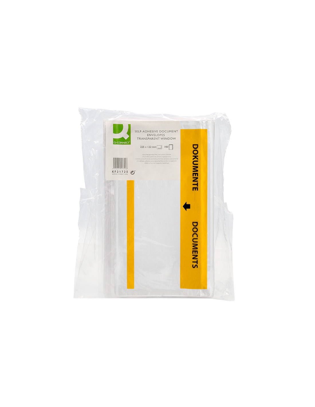 Sobre autoadhesiu q-connect portadocuments multilingue 225x122 mm finestra totalment transparent paquet de 100