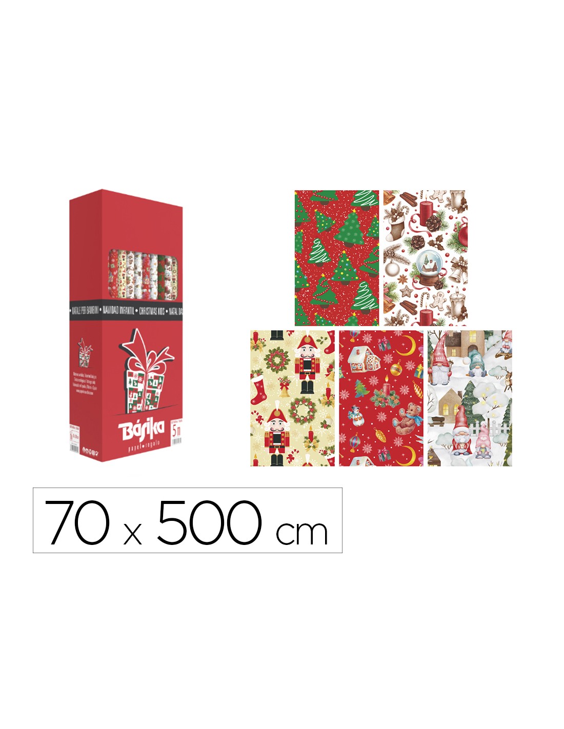 Paper de regalo basika nadal rotllo ample 70 cm longitud 5 m dissenys assortits gramatge 50 gr