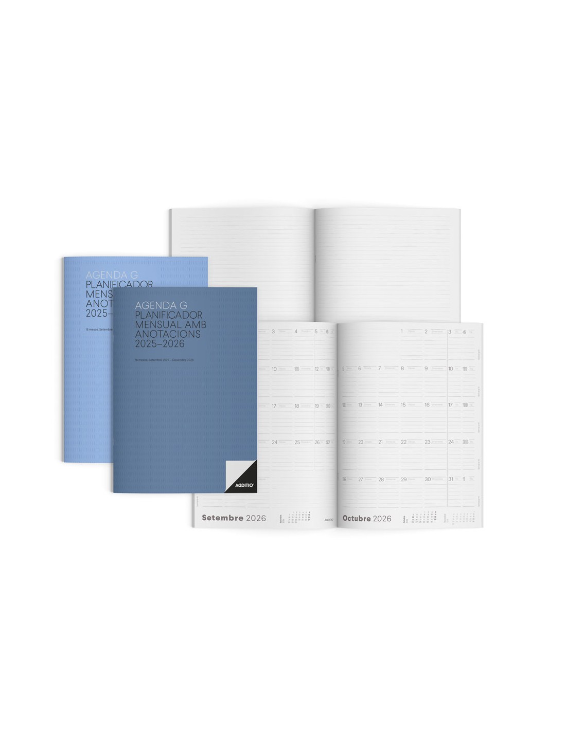 Agenda escolar g additio mes a la vista 2025-2026 calendari de planificació 19,5 x 28,5 cm en catalan