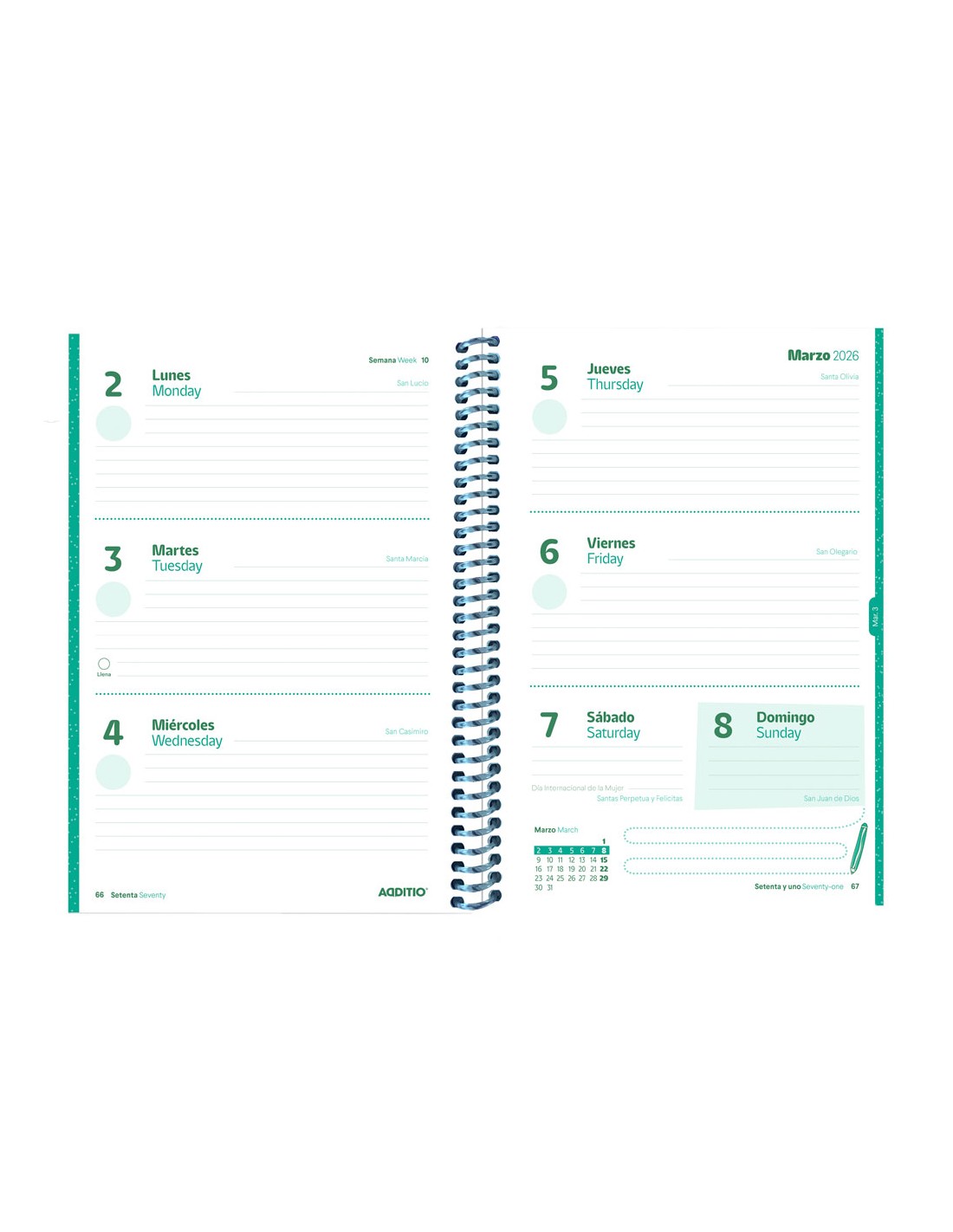 Agenda espiral additio escolar planet din a5 setmana vista 128 pàgines tapa polipropilè 150x210 mm