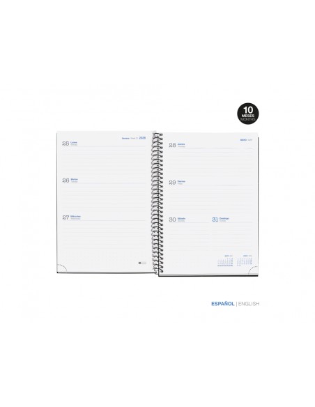 Agenda espiral escolar miquelrius basic din a5 setmana vista 25-26 tapa cartró forrat blau marí