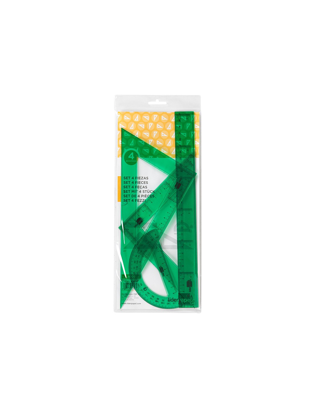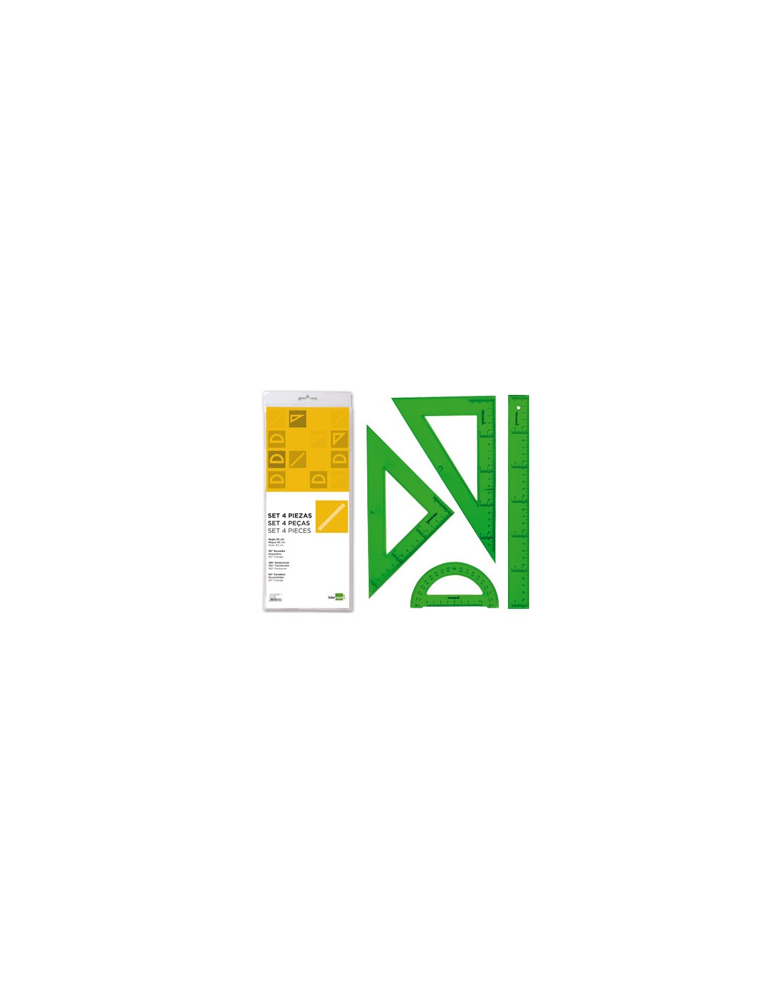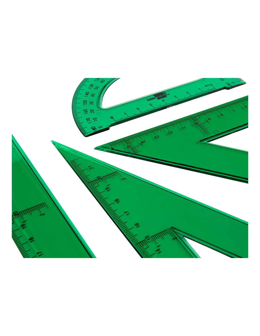 Joc esquadra cartabon regla 30 cm i semicircul a petaca liderpapel verd