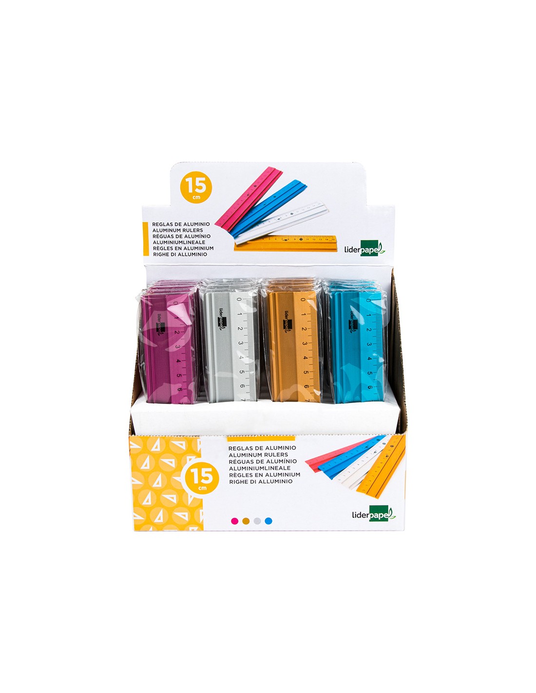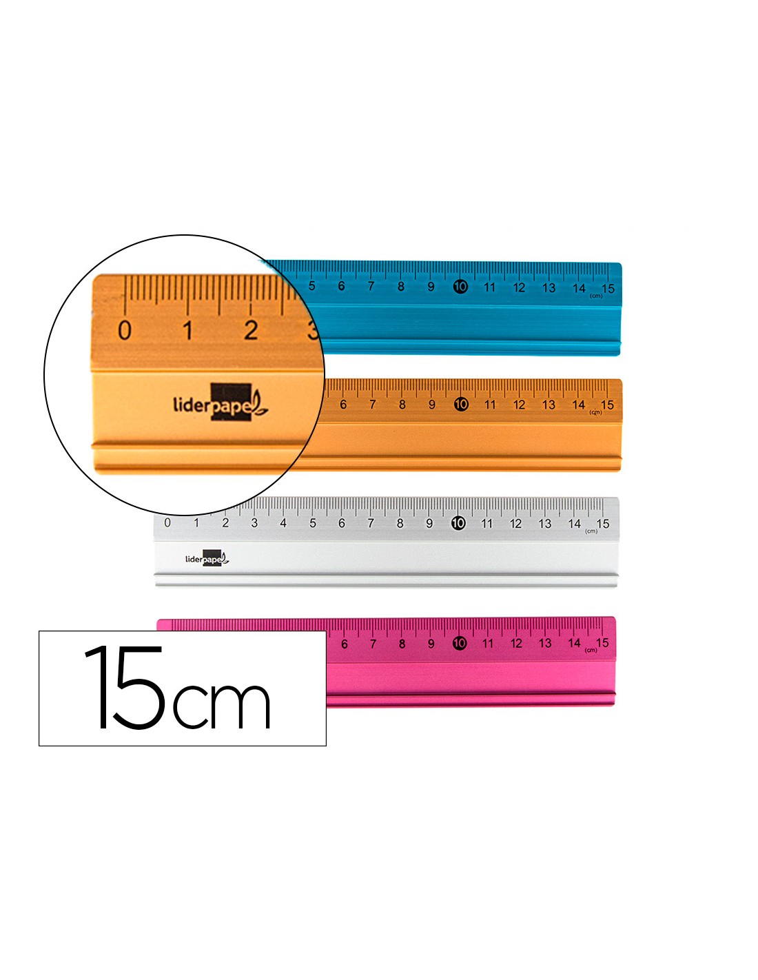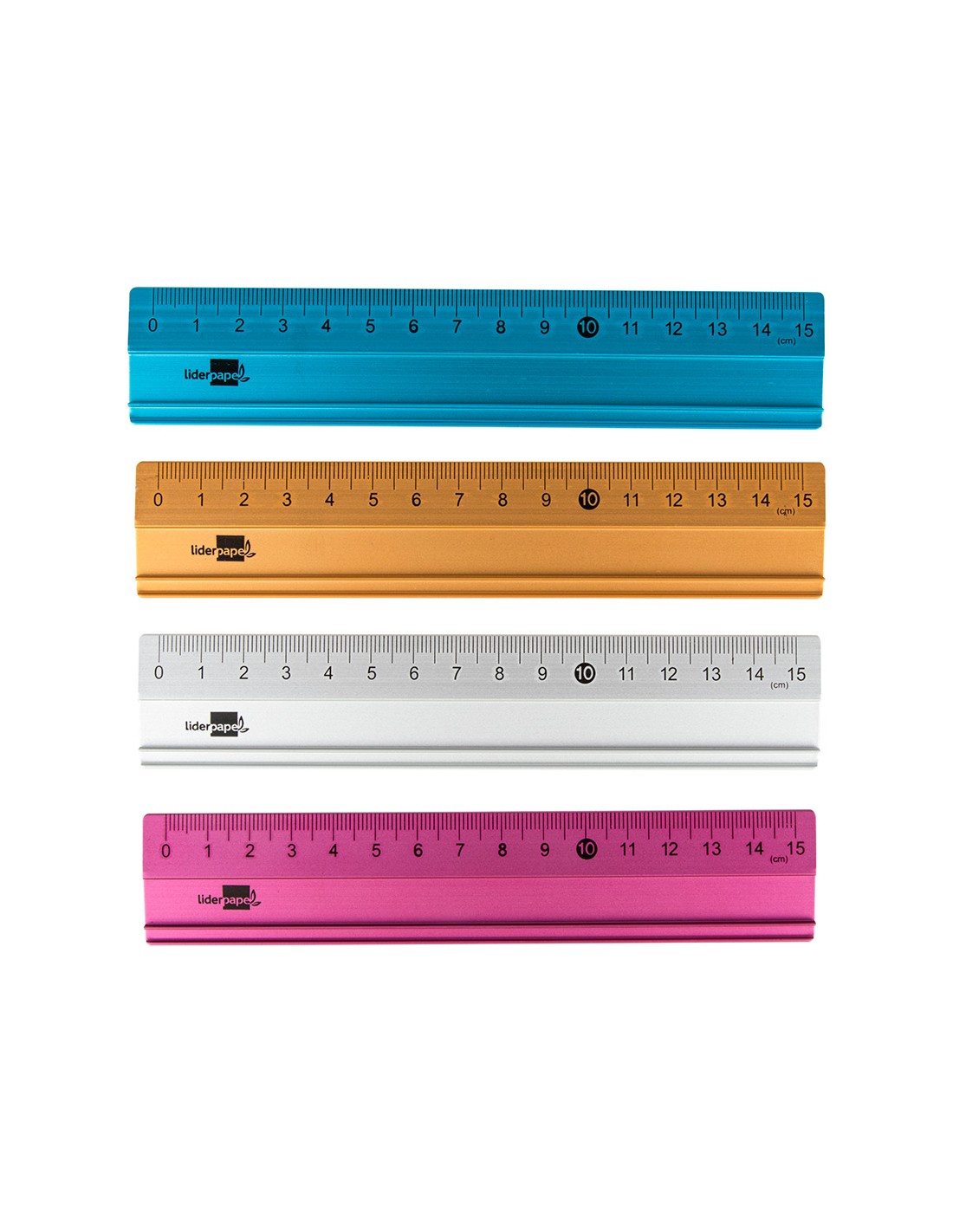 Base mil·limetrada i bisellada. Colors assortits alumini, blau, rosa i mostassa.