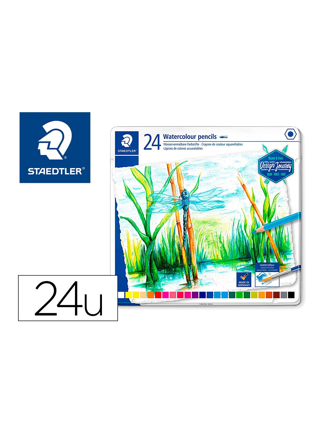 Llapis de colors staedtler aquarelables caixa metall de 24 unitats colors assortits