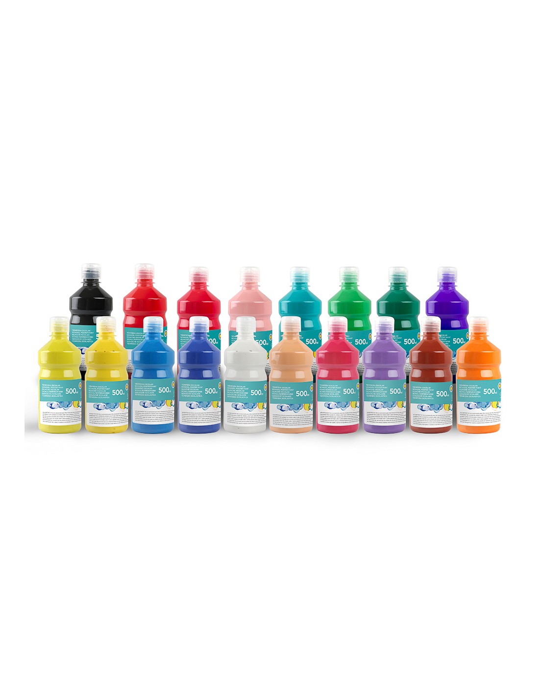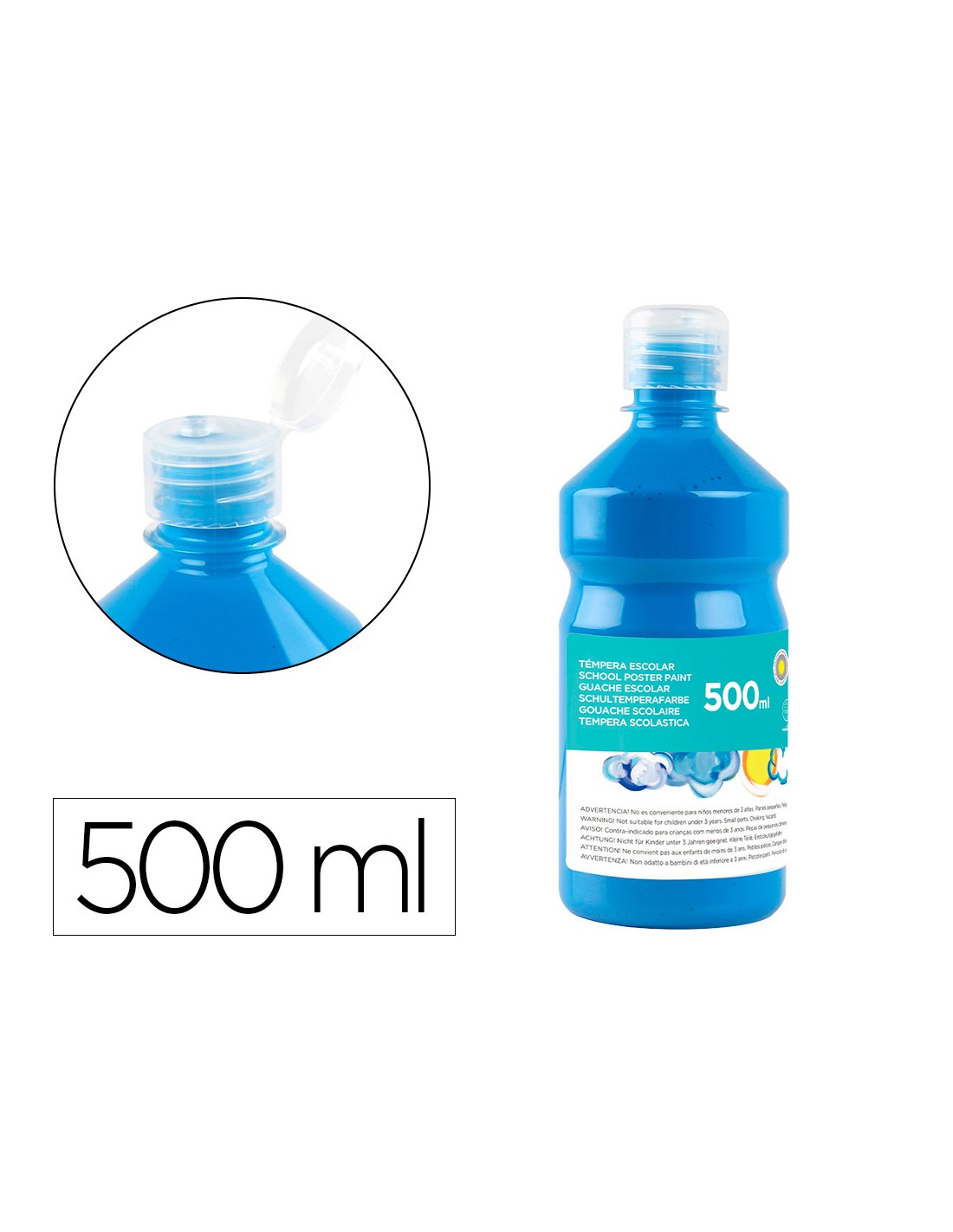 Témpera escolar. Ideal per a ús escolar. Adequada a partir dels 3 anys. Super rentable. Amb tancament de seguretat. Colors brillants. L´ampolla de 500 ml.