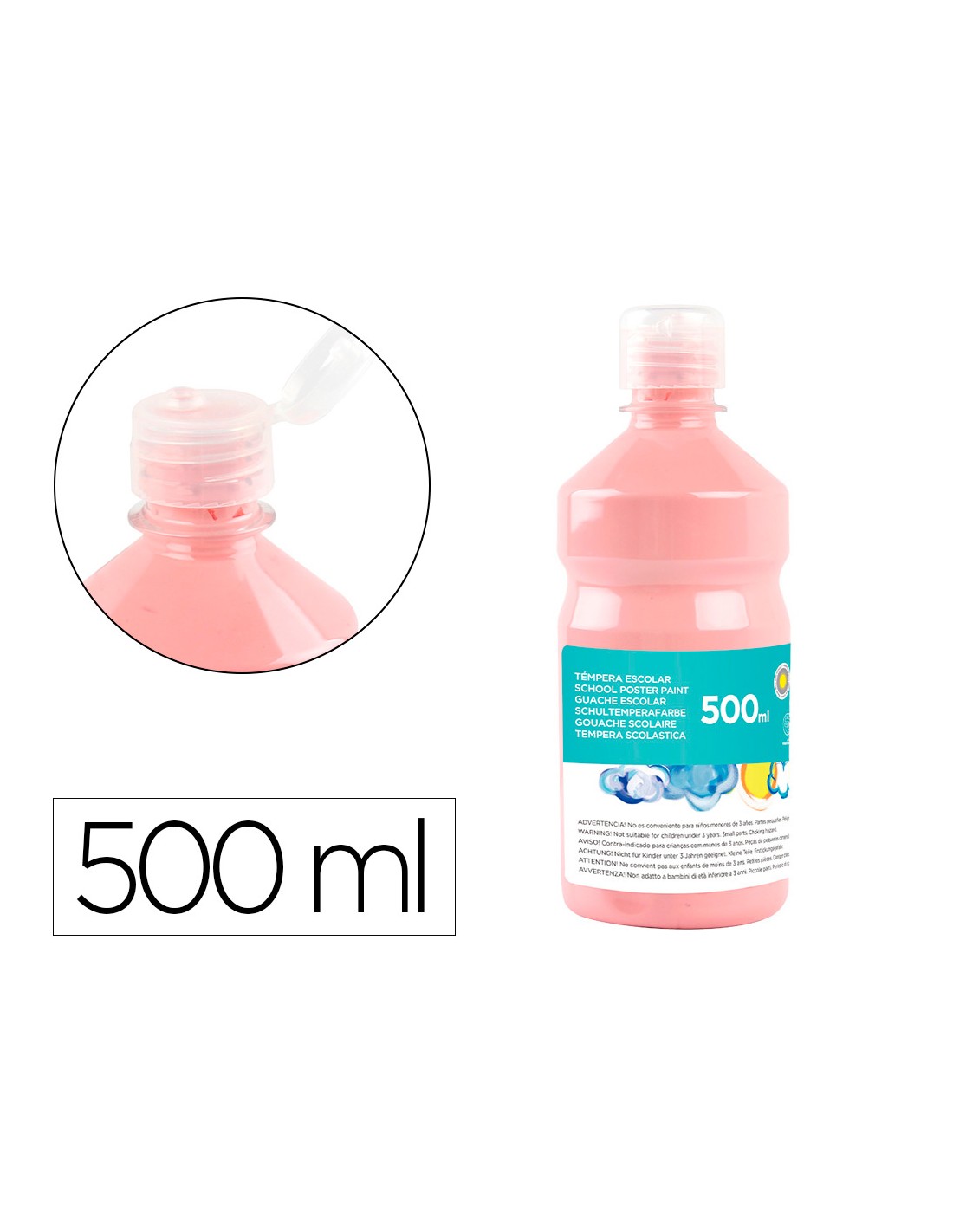 Témpera escolar. Ideal para uso escolar. Adecuada a partir de los 3 años de edad. Superlavable. Con cierre de seguridad. Colores brillantes. La botella de 500 ml.