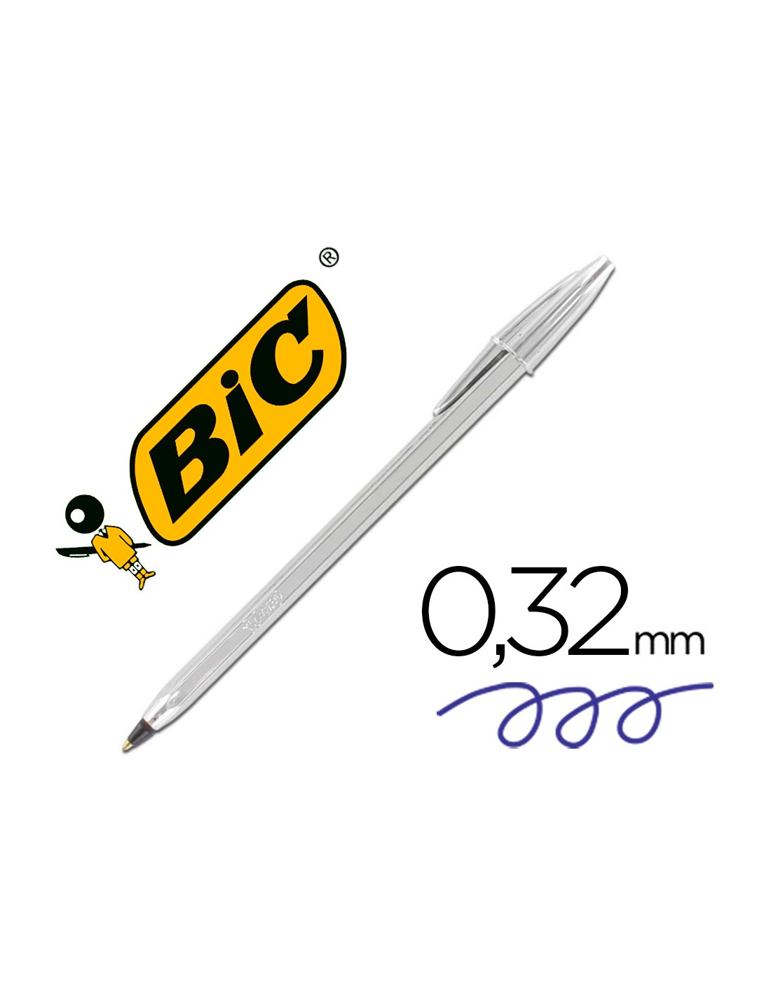 Bolígraf creat per commemorar els 50 anys de BIC. Tinta a base d´oli. Amb cos i caputxó ventilat brillants, de color or i plata. Tinta d´alta qualitat. Punta mitjana de 1 mm. Traç de 0,32 mm.