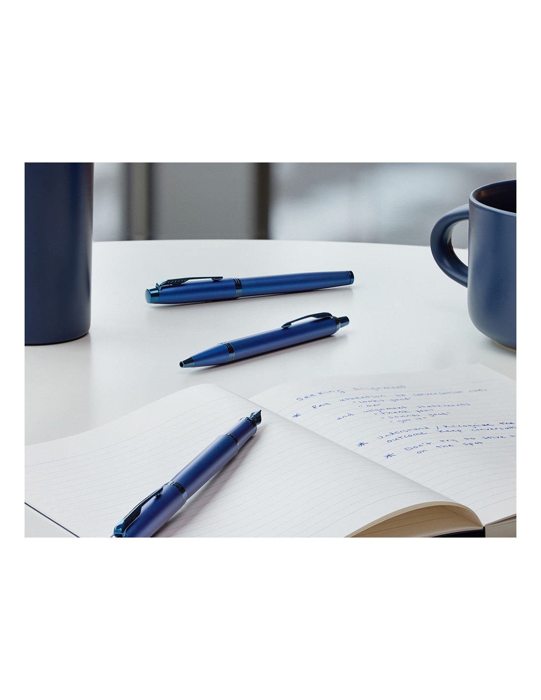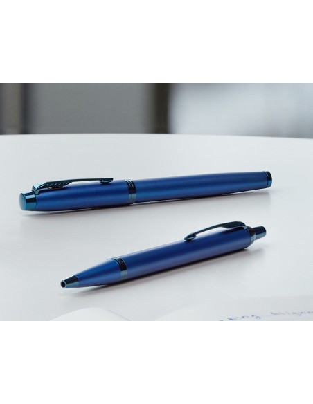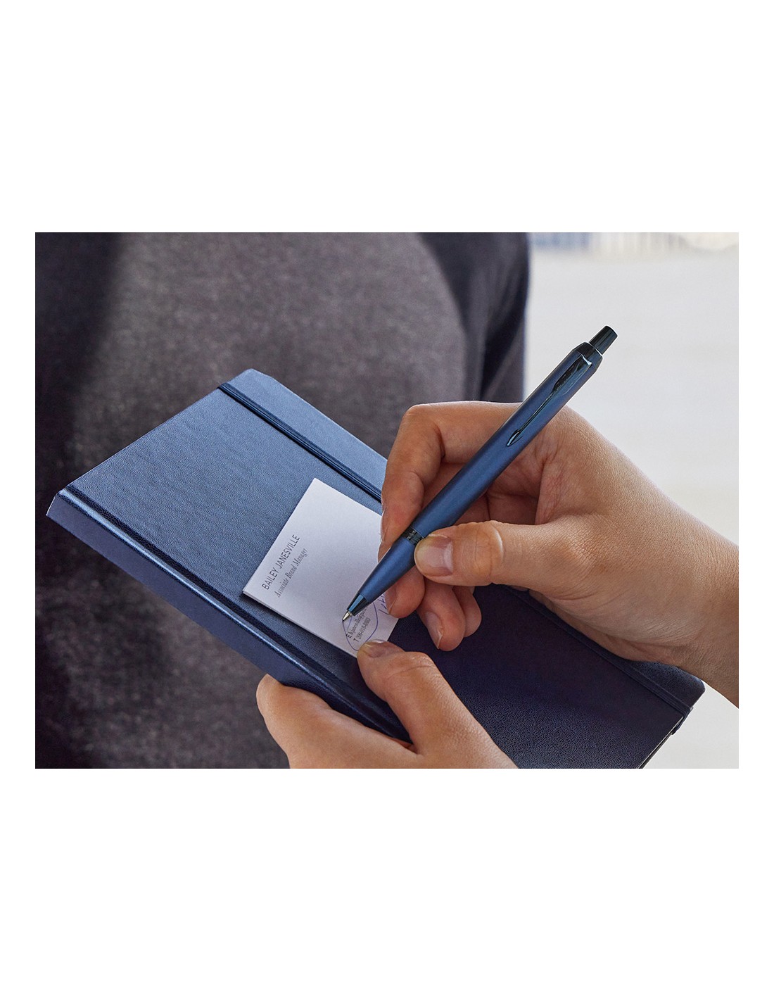 Bolígraf IM Monochrome PARKER Blau. Dissenyat pensant en el professional modern, el bolígraf de PARKER IM, funcional, consolidat i refinat, destacarà sens dubte a qualsevol lloc de treball. Els infal·libles bolígrafs PARKER IM monocromàtics tenen un cos completament metàl·lic que li dóna un aspecte luxós a les mans. Alhora, el disseny monocromàtic, des dels detalls fins a la punta blaves, reflecteix una elegància inigualable. Amb més d un segle d experiència i artesania pròpia, aquest bolígraf de Parker compta amb peces metal·litzades exclusives adornades amb un revestiment de PVD que ofereix una resistència superior al desgast i la corrosió, així com un look distintiu. Aquest bolígraf modern utilitza recanvis de tinta Quinkflow per a marques nítides i estables perfectes per a l escriptura diària. Amb el seu elegant estoig de REGALO PARKER, el bolígraf monocromàtic professional PARKER IM és un REGALO memorable.