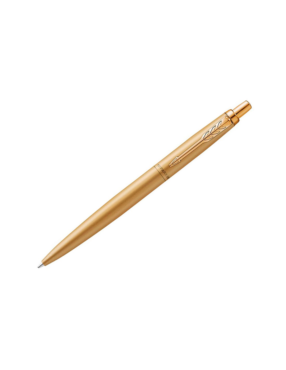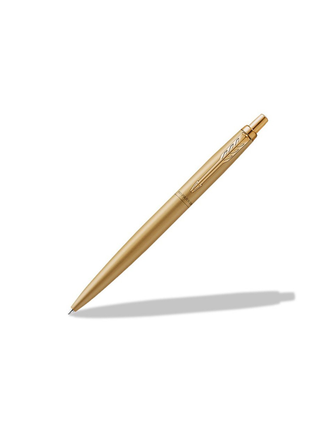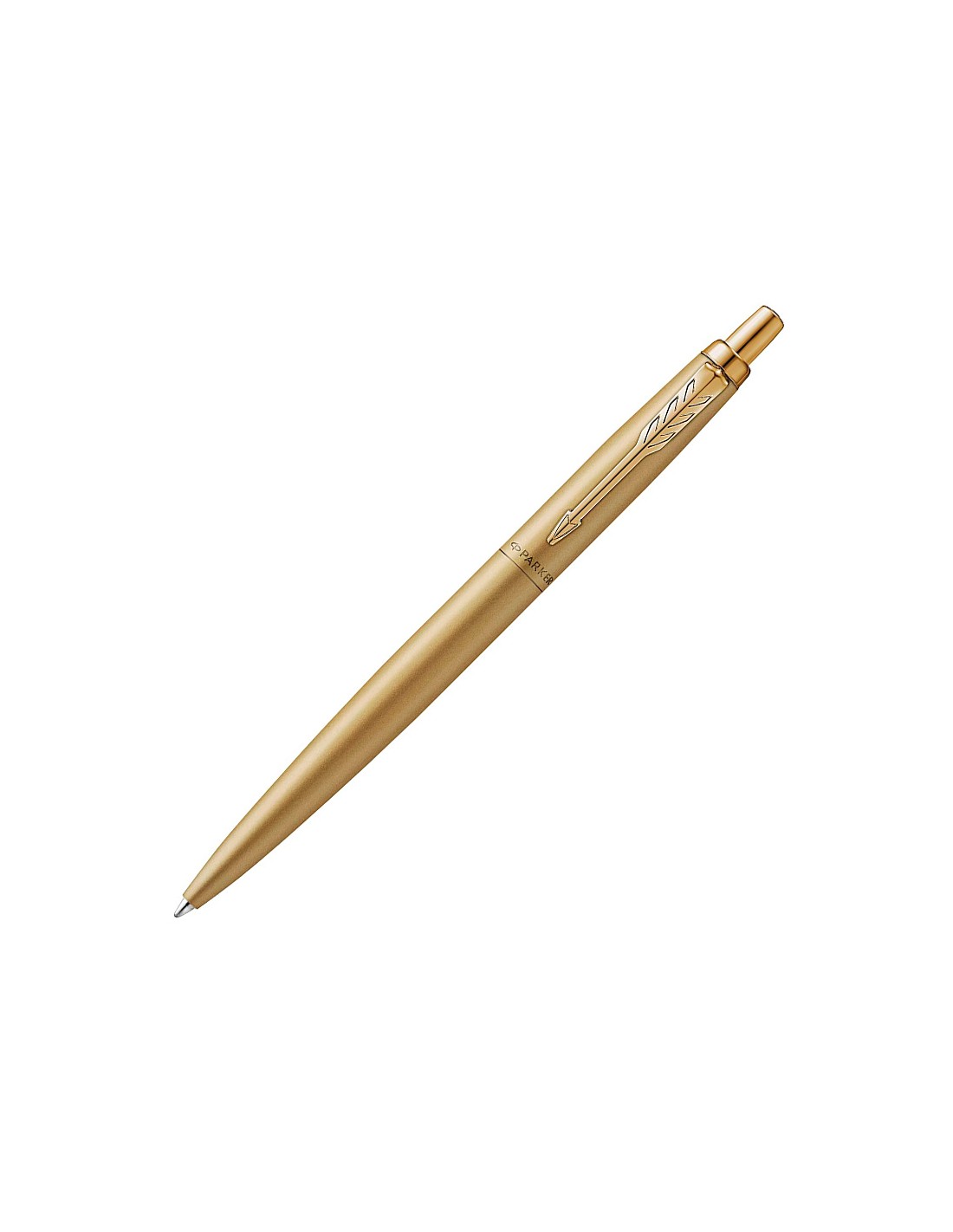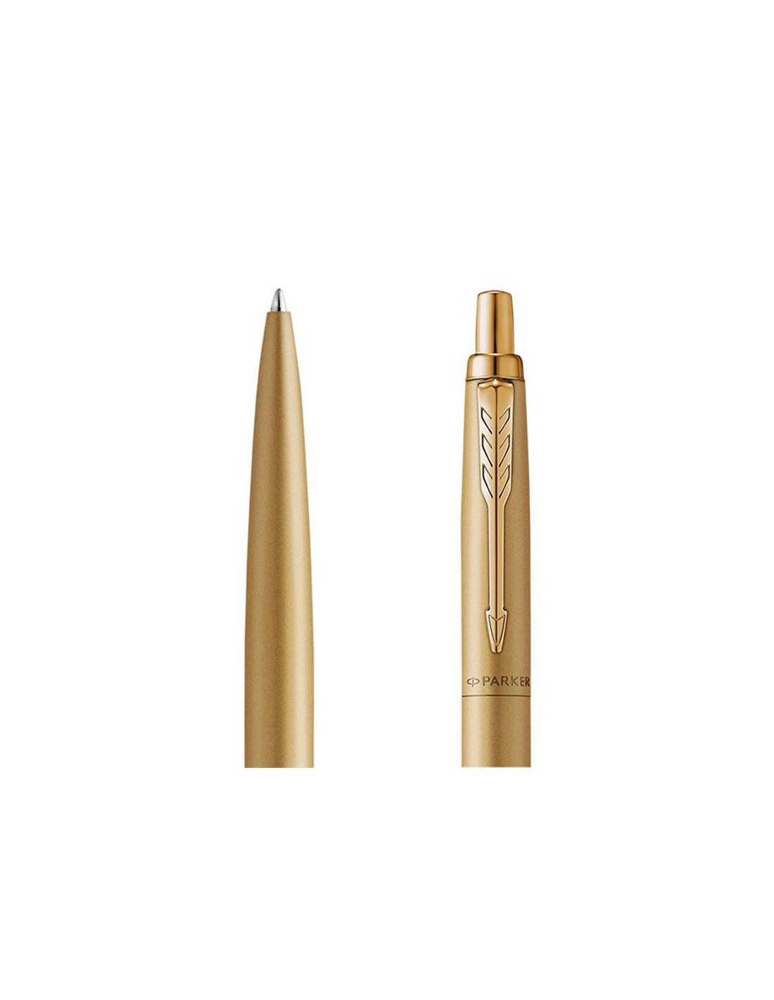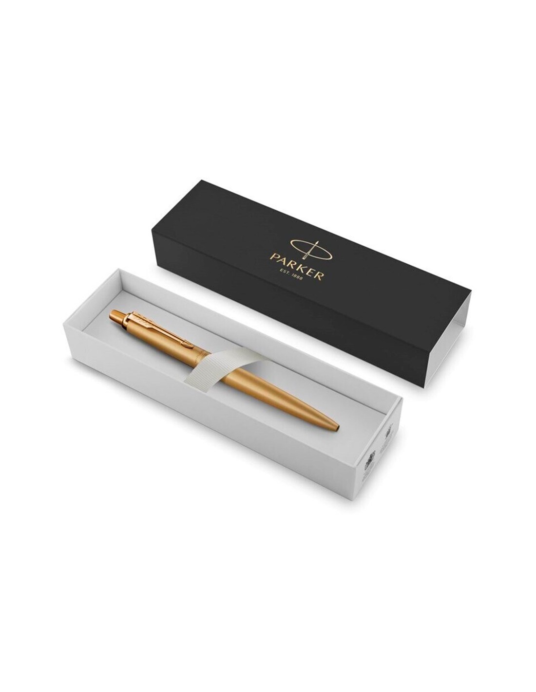 L acabat monocromàtic en to daurat del bolígraf Jotter XL Gold és icònic fins a l últim detall, des del disseny expressiu però sofisticat de la tapa mat i el cos fins al clip i el botó distintius en forma de fletxa, la brillantor del qual completa el look. Amb més secció transversal i longitud, perquè tothom pugui gaudir de la comoditat d escriure. Icona de disseny del 1954 amb un distintiu clip en forma de fletxa i un clic reconeixible. Mecanisme d expulsió amb botó polsador. El bolígraf és aproximadament un 7% més gran que el Jotter estàndard.