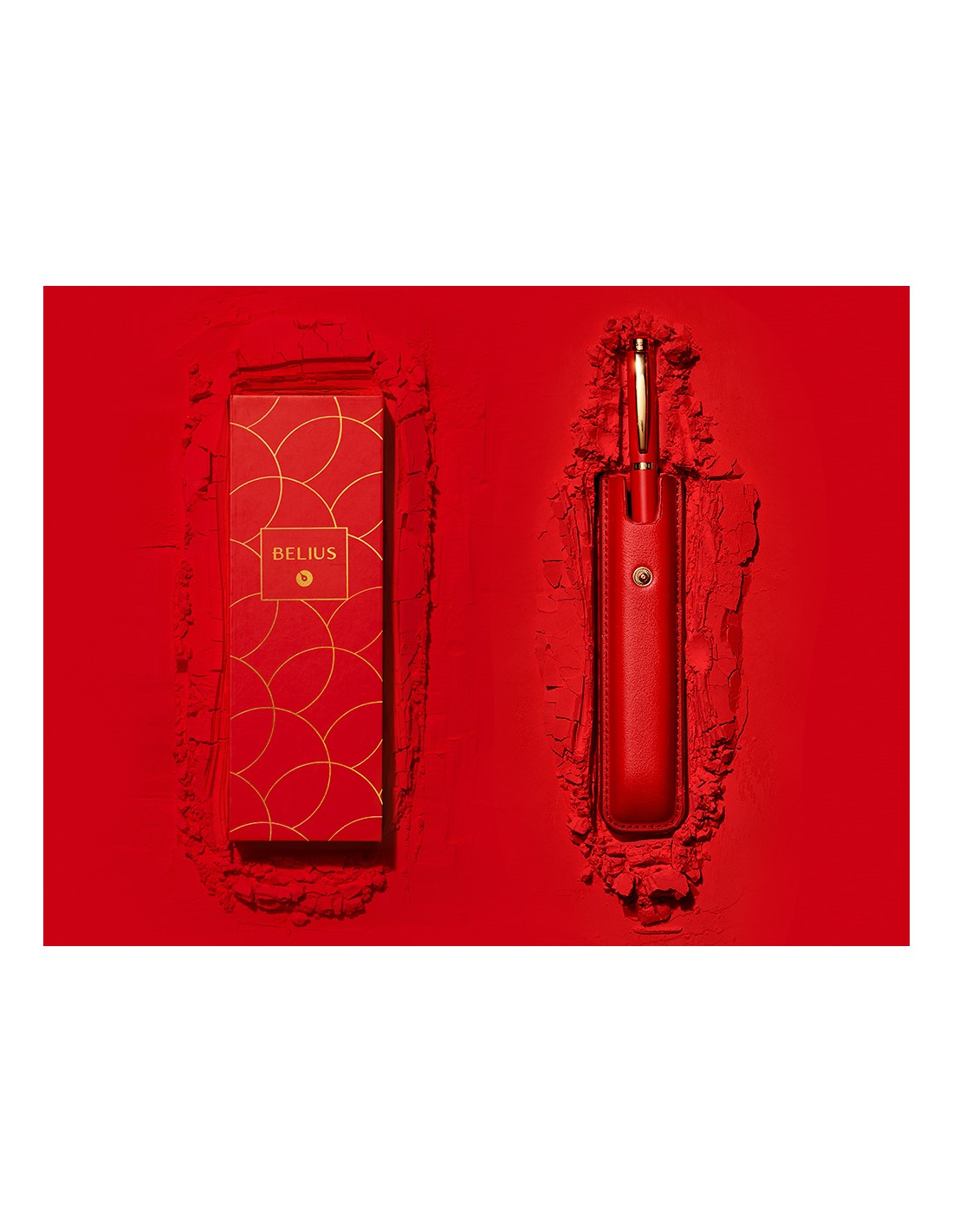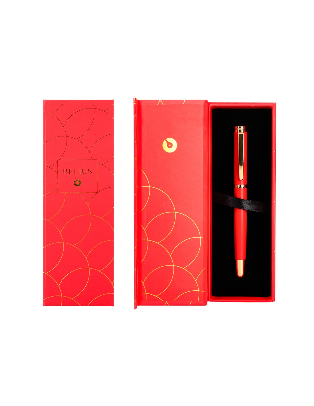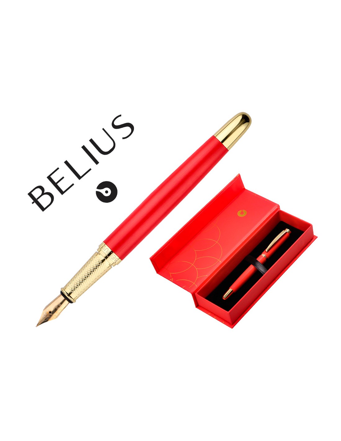 Ploma belius passion dor alumini textura raspallada color vermell i daurat tinta blau caixa de disseny