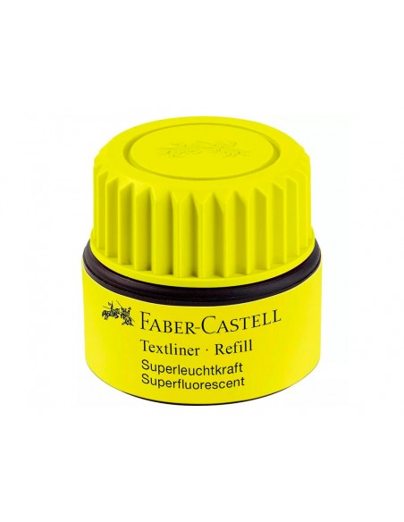 Tinta retolador faber castell textliner fluorescent 1549 amb sistema capil·lar color groc pot 30 ml