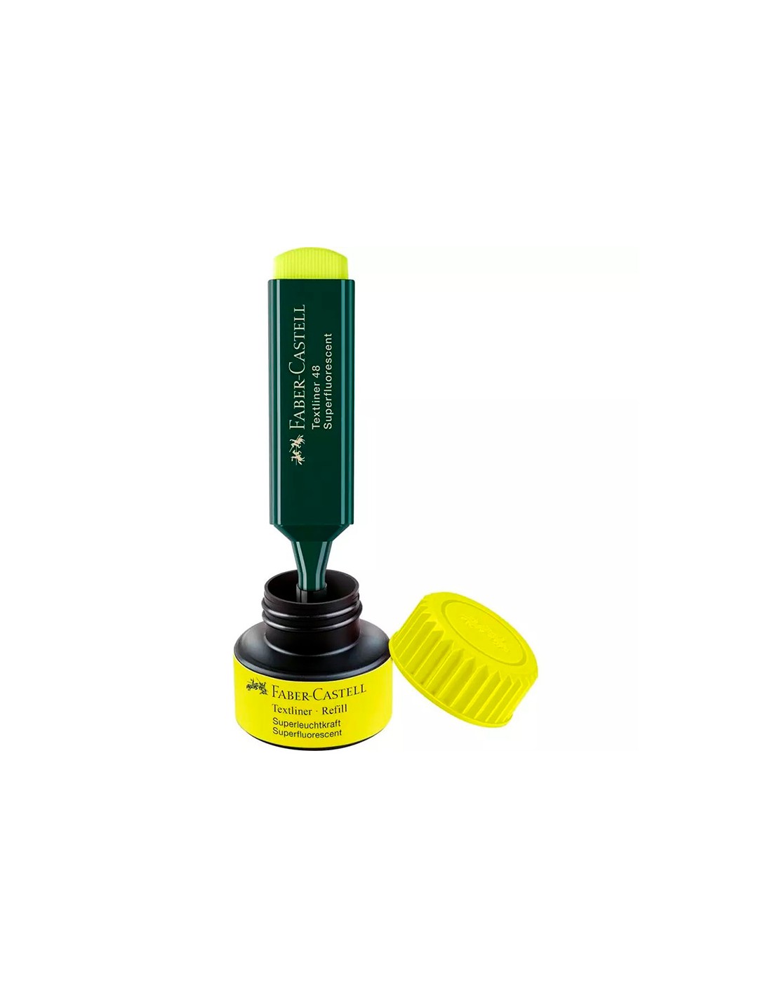 Sistema de recanvi respectuós amb el medi ambient. Tinta universal amb base a laigua. Diversos usos. No es vessa per sobreompliment. El flascó de recàrrega de tinta conté 30 ml. Disponible en 6 colors supervius. Serveix per als següents models de marcador Textliner 1543, 46 i 48. Color groc superfluorescent.