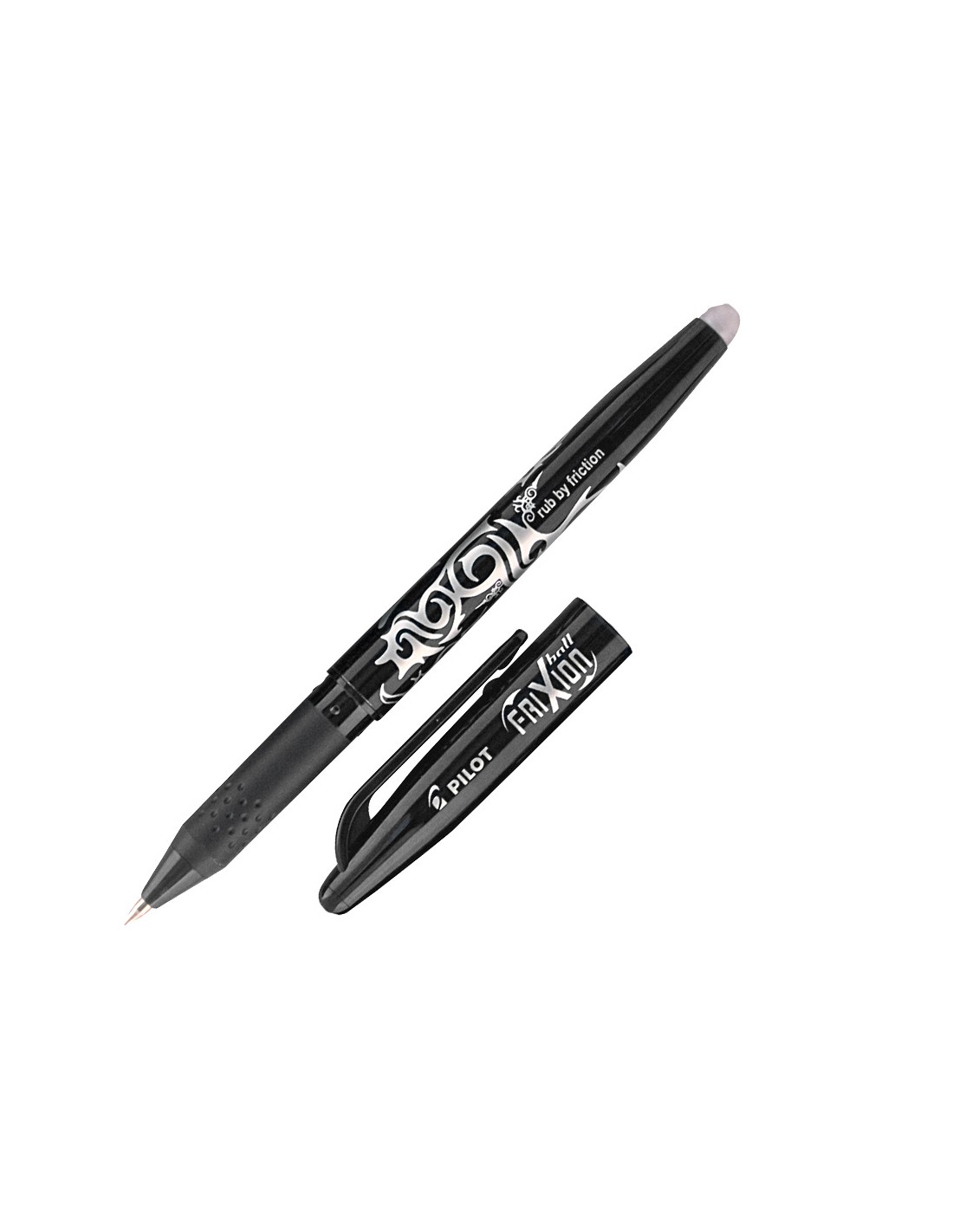 Bolígraf amb tinta gel. La tinta desapareix amb un únic i nou sistema de fricció. No taca, no fa malbé el paper, no deixa restes. Punta de bola. Grip de cautxú a la part inferior. Cos del color de la tinta. Punta de 0,7 mm. Traç de 0,4 mm.