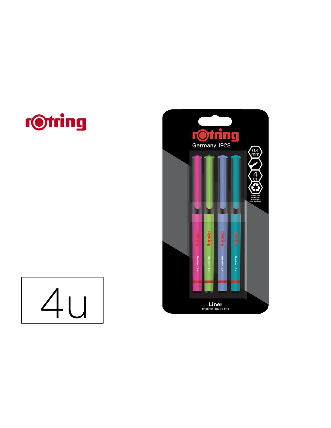 Retolador rotring fineliner punta metalica 0,4 mm pack de 4 colors assortits