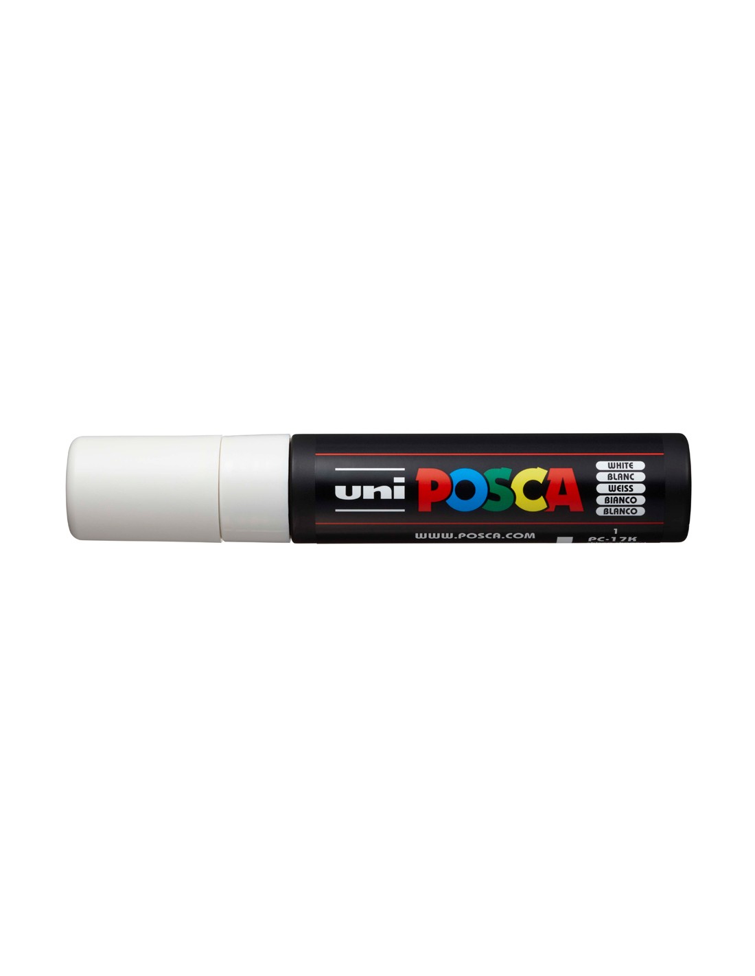 Marcador de pintura no permanent, base aigua. No és tòxic Punta de polièster bisellada PC17K 15,0 mm Línia molt gruixuda Pinta sobre qualsevol superfície metall, vidre, plàstic, pedra, tela, terracota, porcellana i molts més Color opac deixar assecar després de l',aplicació i la nova cap de pintura, cobrirà completament el color anteiror. Blanc