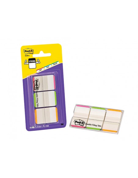 Extragruixudes. No s arruguen ni dobleguen amb el temps Ideals per arxivar i etiquetar. Es pot escriure a tota la seva superfície. Amb franja en color. Mides 38,1 x 25,4 mm. El dispensador funda de 3 colors x 22 banderetes rígides mitjanes.