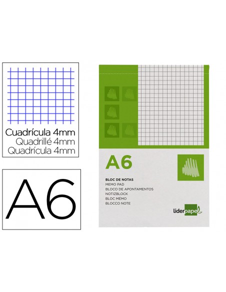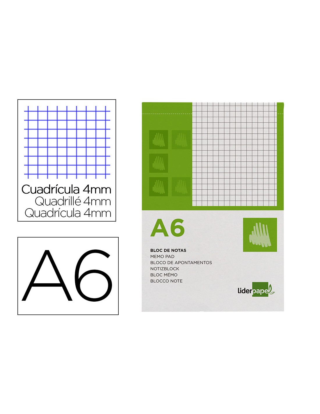 Bloc notes liderpapel quadre 4mm a6 80 fulls 60g/m2 perforat