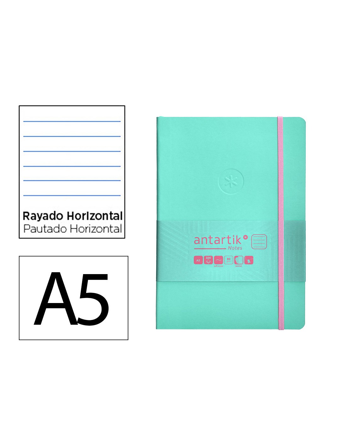Submergeix-te en l estil de moda i pràctic de la col·lecció ANTARTIK Notes. Aquest quadern té un disseny elegant amb l estrella genial d ANTARTIK impresa amb relleu, donant-li un toc de disseny únic. Cobert en una pell simil, proporciona un tacte ultra suau. Compte amb un tancament elàstic amb gosa, 2 punts de llibre per organitzar i accedir fàcilment a diferents seccions. A més, ofereix una butxaca tipus sobre, ideal per guardar targetes o petites notes. ANTARTIK Notes té fulls de paper d alta qualitat de 80 grams i certificació FSC, oferint una superfície òptima per escriure, dibuixar o plasmar les idees creatives. La clau està en la versatilitat del seu ús des del dia a dia, a la feina, fins a la captura d idees, projectes o creació d esbossos creatius. CARACTERÍSTIQUES Grandària A5 TAPA TOVA FULLES RATLLES 80 FULLS COLOR ROSA I TURQUESA 80 GR FSC Descobreix la gamma completa de colors a ANTARTIK Notes i troba el cuade adaptat al teu estil!