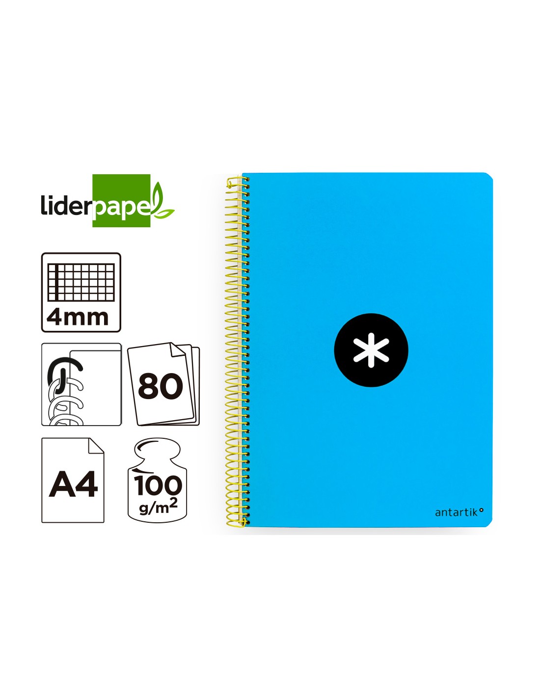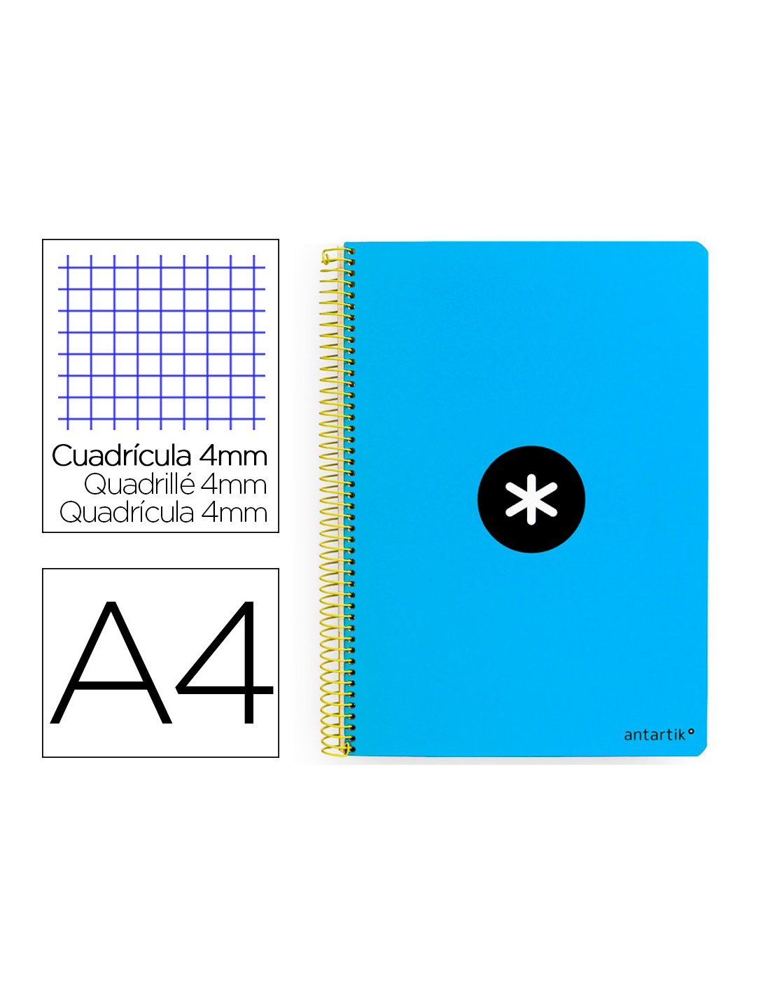 Quadern espiral a4 antartik tapa dura 80h 90gr quadre 4mm amb marge color blau