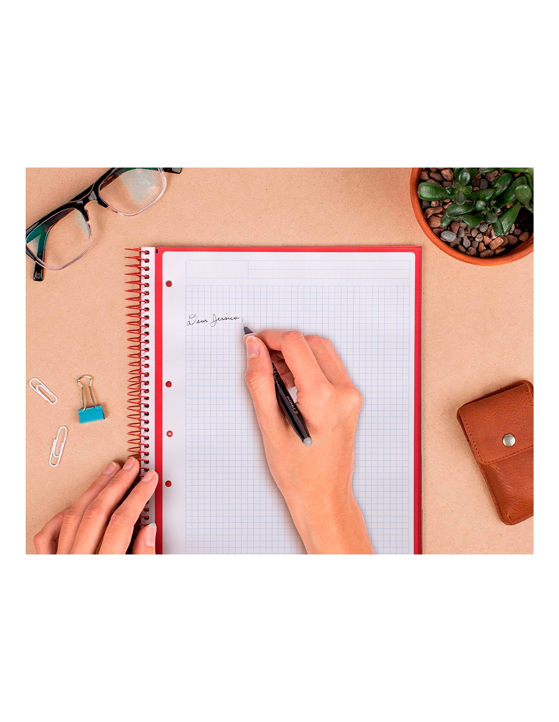 El quadern de més alta gamma del mercat exclusiu disseny, característiques inigualables, un quadern sense precedents que es distingeix per la suavitat i la blancor del seu paper, ia més fa l escriptura molt fluida. Tapa de cartró entrecolat de 1,5 mm de gruix, folrat a una cara amb paper estucat mat extrasuau i reserva de vernís UVI. Guarda interior impresa. 100 i 120 fulles. Gran resistència i rigidesa. Paper extrablanc de 100 g/m², ultrasuau que fa l escriptura molt més fluida. La tinta no traspassa. 4 bandes de colors (format A6) i 5 bandes de colors (formats A5 i A4). Espiral nylonitzada de colors. Coil-lock.