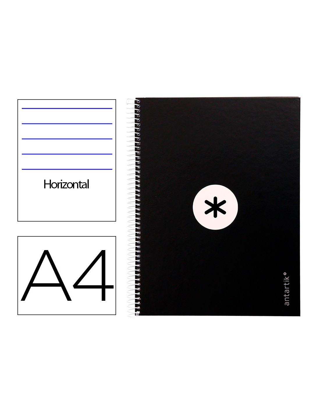 Quadern espiral a4 micre antartik tapa forrada80h 90 gr horitzontal 1 banda 4 trepants color negre