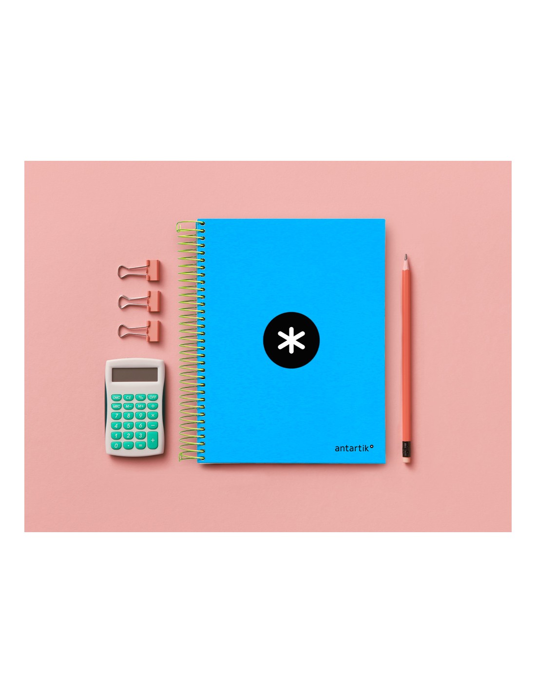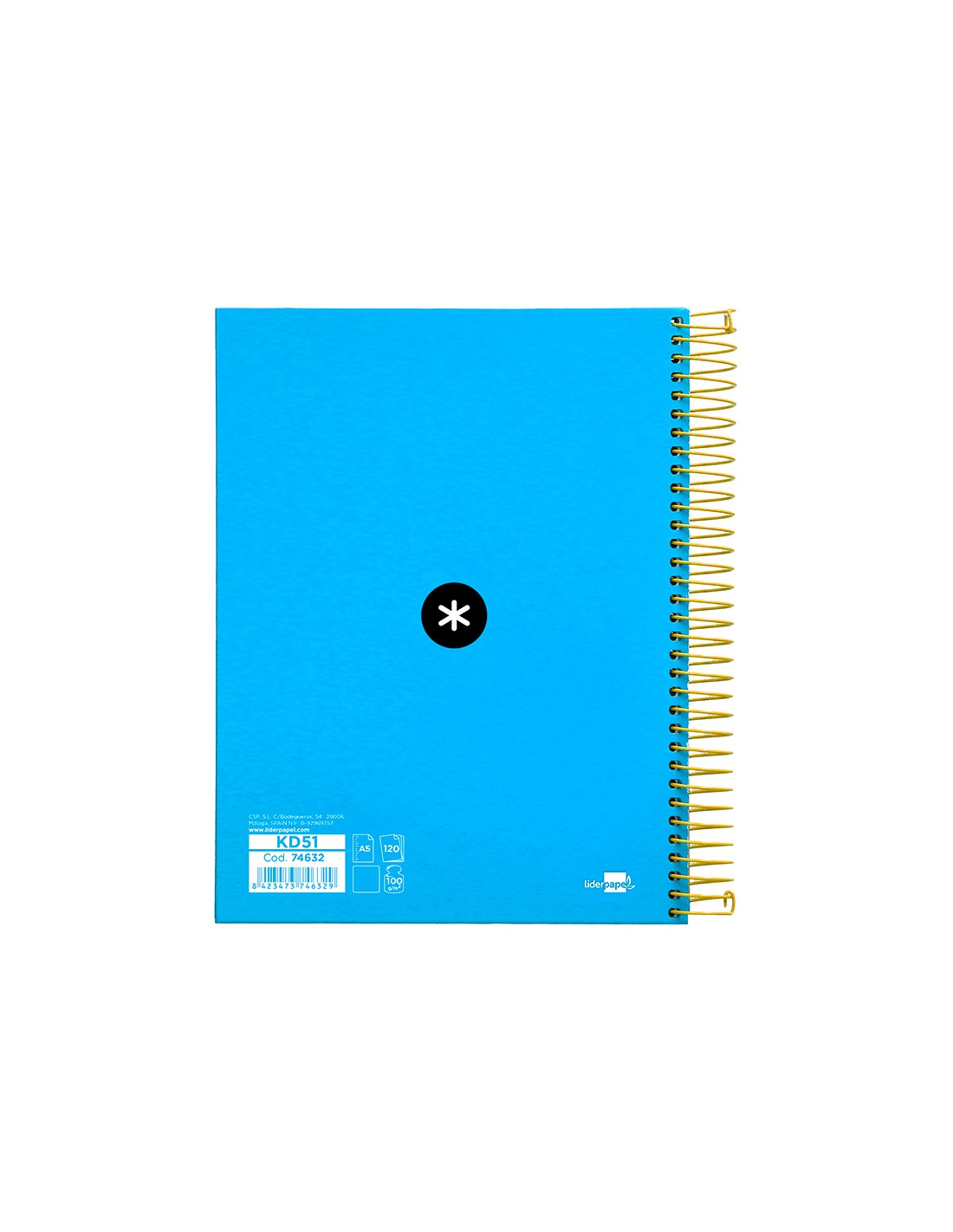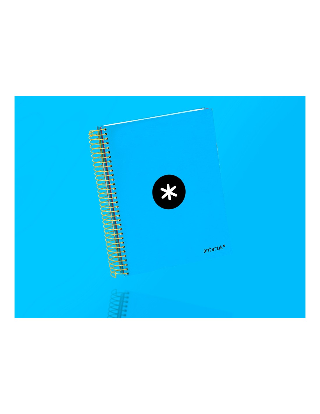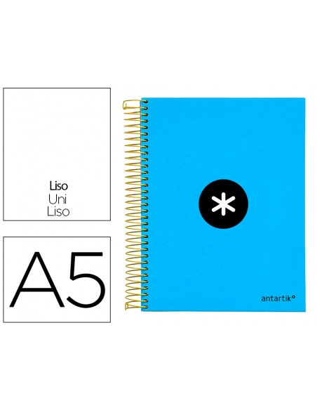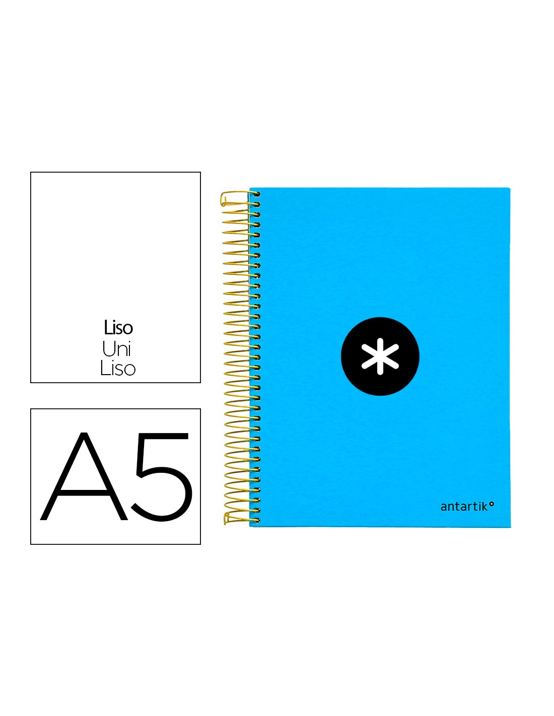 Quadern espiral a5 micre antartik tapa forrada 120h 90g llis amb bandes 6 trepants color blau