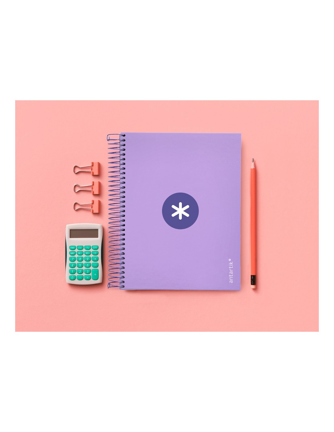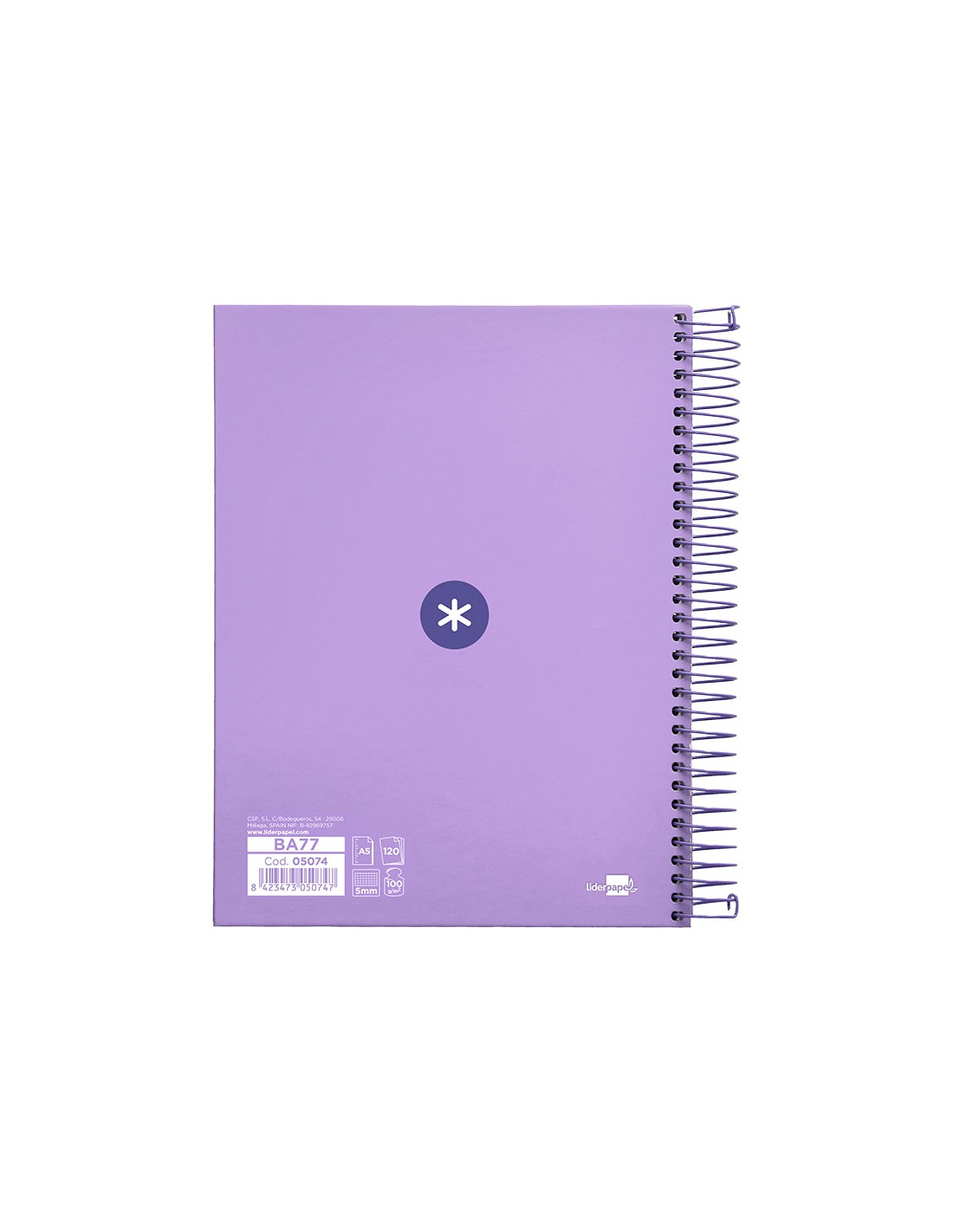 Quadern espiral a5 micre antartik tapa forrada120h 90 gr quadre 5mm 5 banda 6 trepants color lavanda
