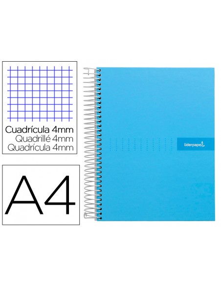 Quadern espiral liderpapel a4 crafty tapa forrada 80h 90 gr quadre 4mm amb marge color celest