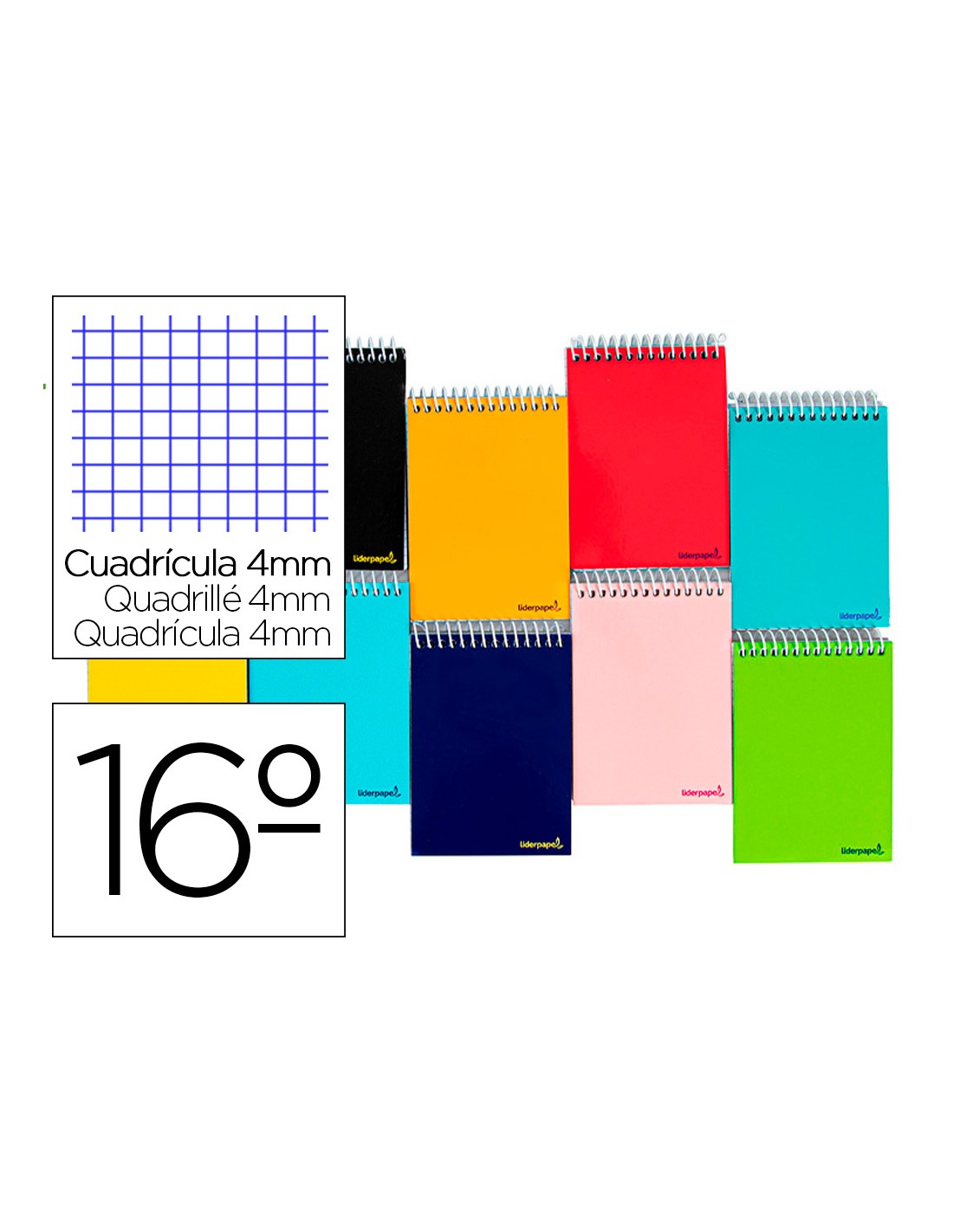 Quadern espiral liderpapel butxaca setze apaïsat smart tapa tova 80h 60gr quadre 4mm colors assortits