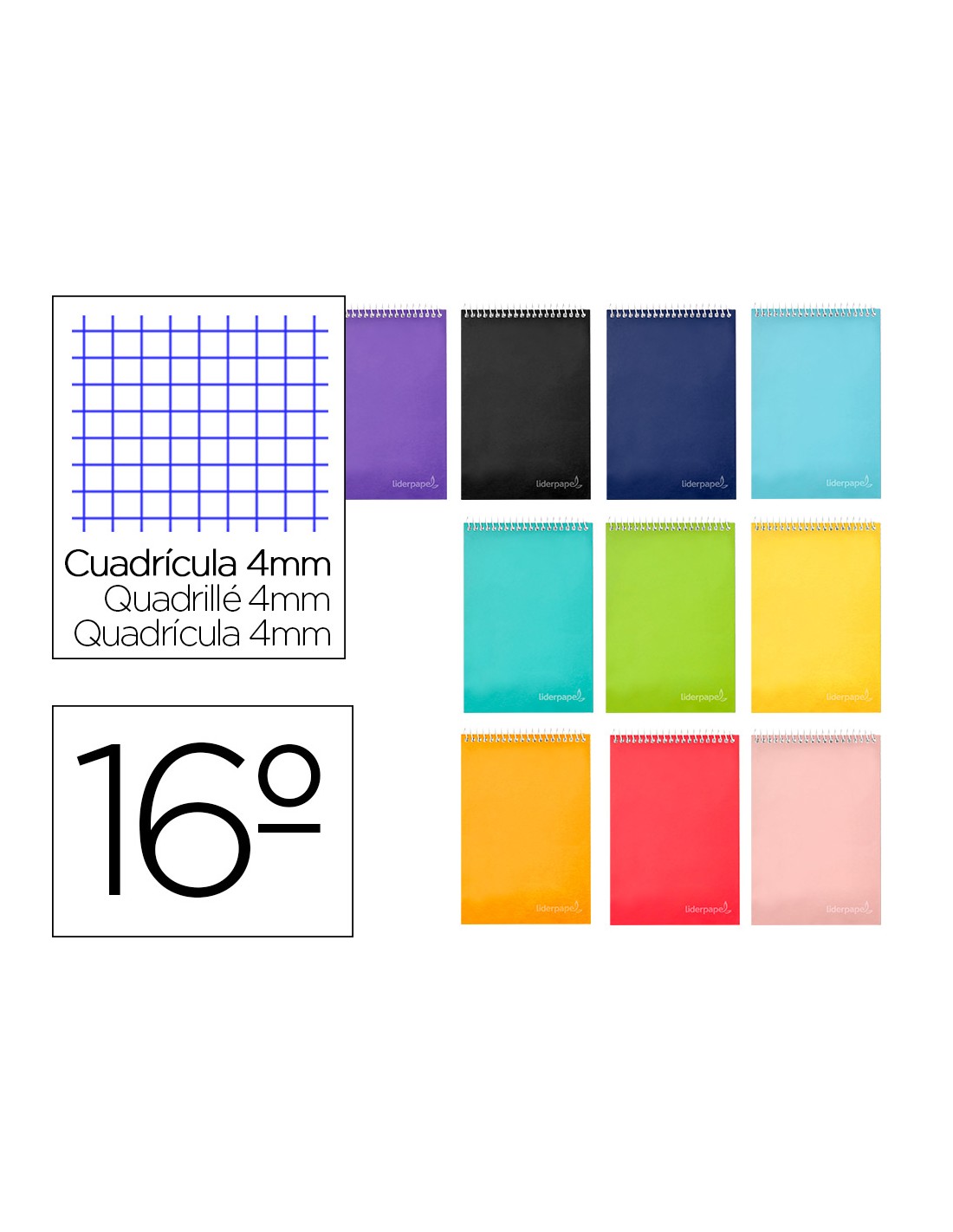 Quadern espiral liderpapel butxaca divuisetia apaïsat witty tapa dura dura 80h 60gr quadre 4 mm colors assortits
