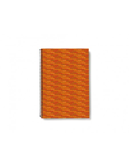 Tapa de cartró entrecolat de 1,5 mm de gruix, folrat a una cara amb paper estucat brillant de 115 g/m². Guarda interior impresa. Paper de 80 g/m² amb bandes de colors. Microperforat. Espiral nylonitzada negra. Coil-lock.