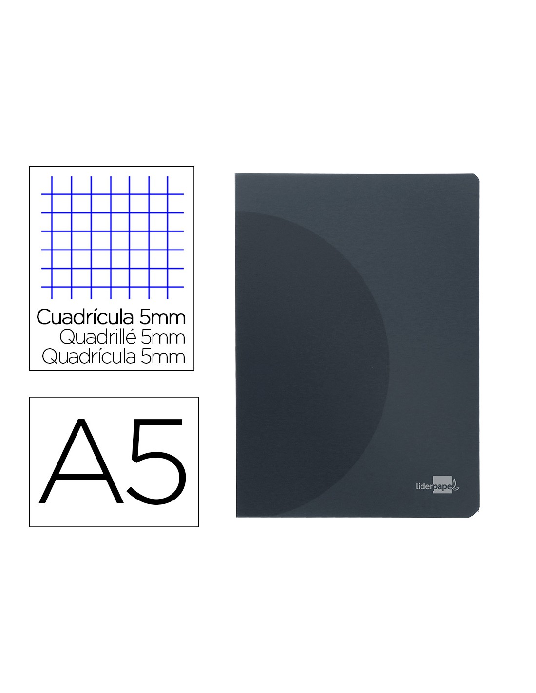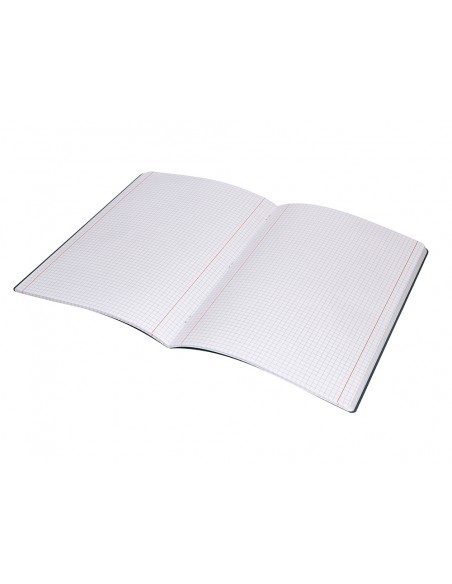 Llibreta amb tapa de plàstic flexible i resistent. Es pot obrir completament per a més comoditat. 48 fulles. Paper de 90 g/m². Quadrícula de 5 mm. Doble marge. Color negre