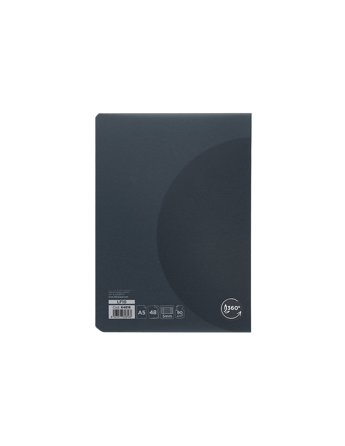 Llibreta liderpapel 360 tapa de plàstic a5 48 fulls 90g/m2 5mm amb doble marge tapa negra