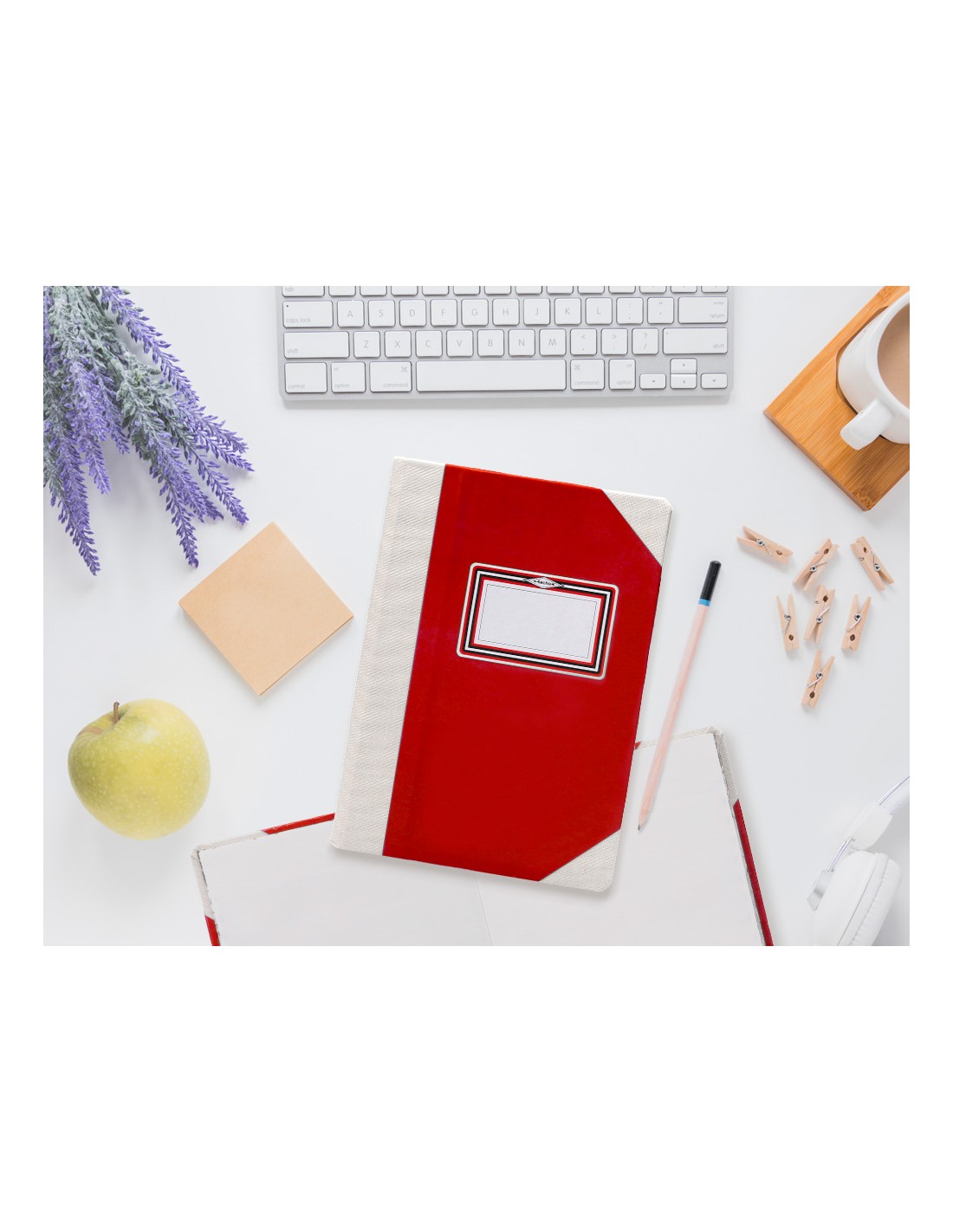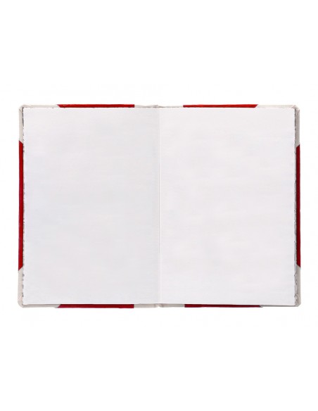Llibre cosit manualment. Tapa folrada amb cartró 2 mm. Interior de paper Offset 100 gr/m². Ideal per a registres, memos, notes diverses, dibuix i sketching. Din A4+. Impressió llis. Color vermell.