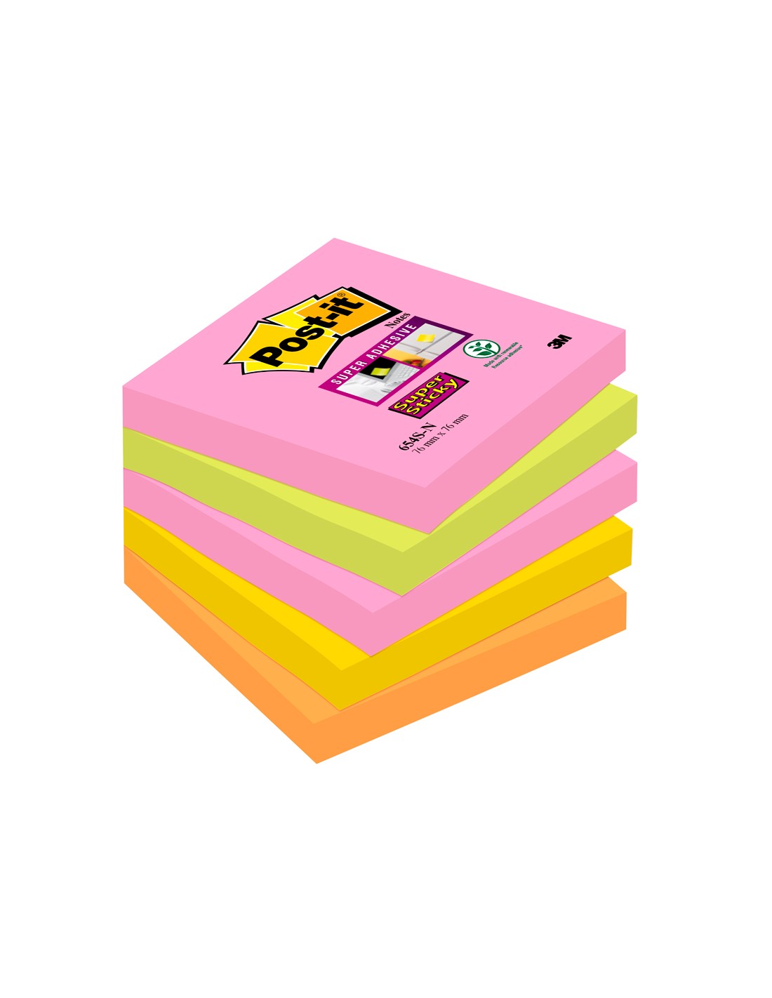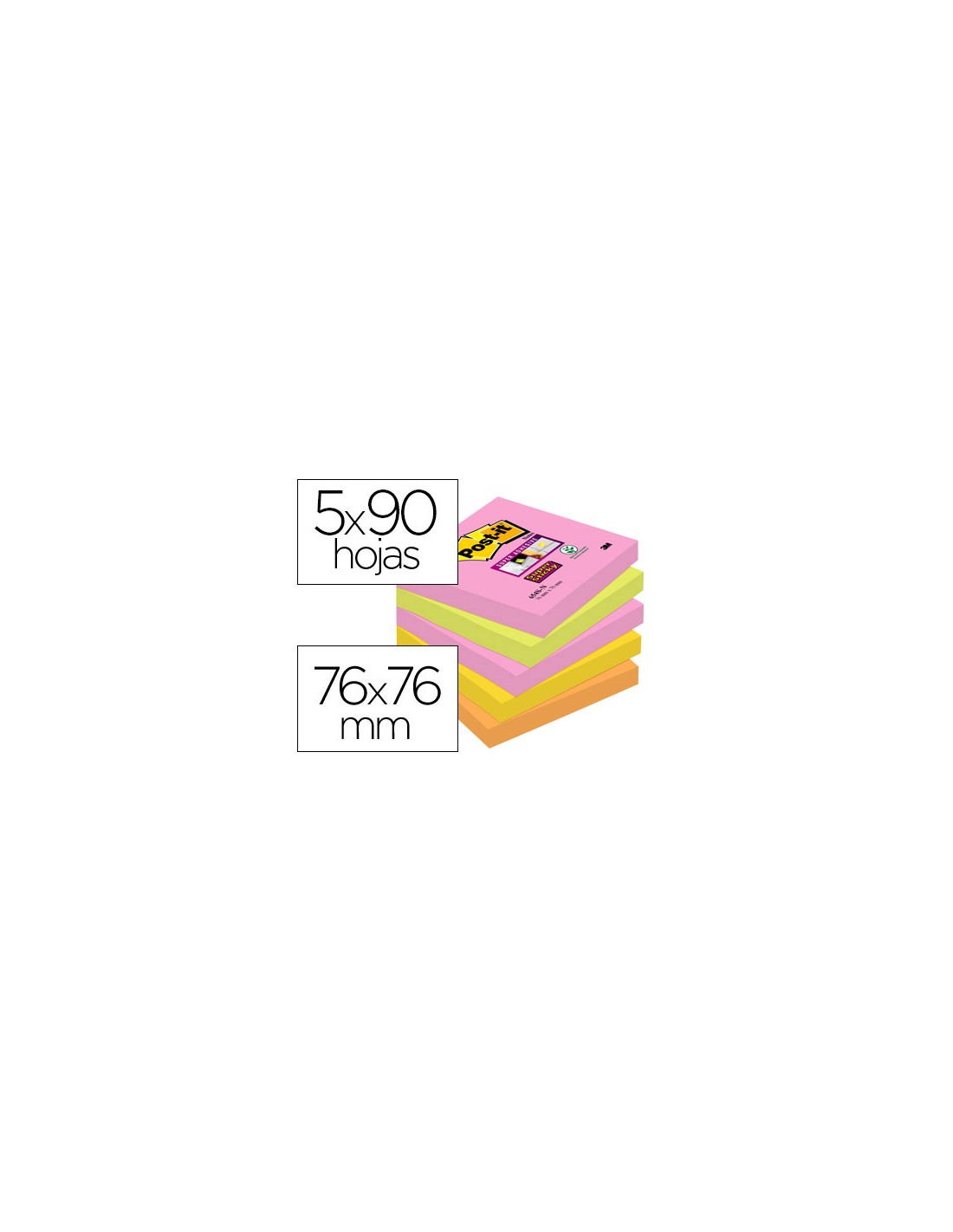 Bloc de notes adhesives lleva i pos post-it super sticky 76x76 mm amb 90 fulls pack de 5 bloc colors assortits