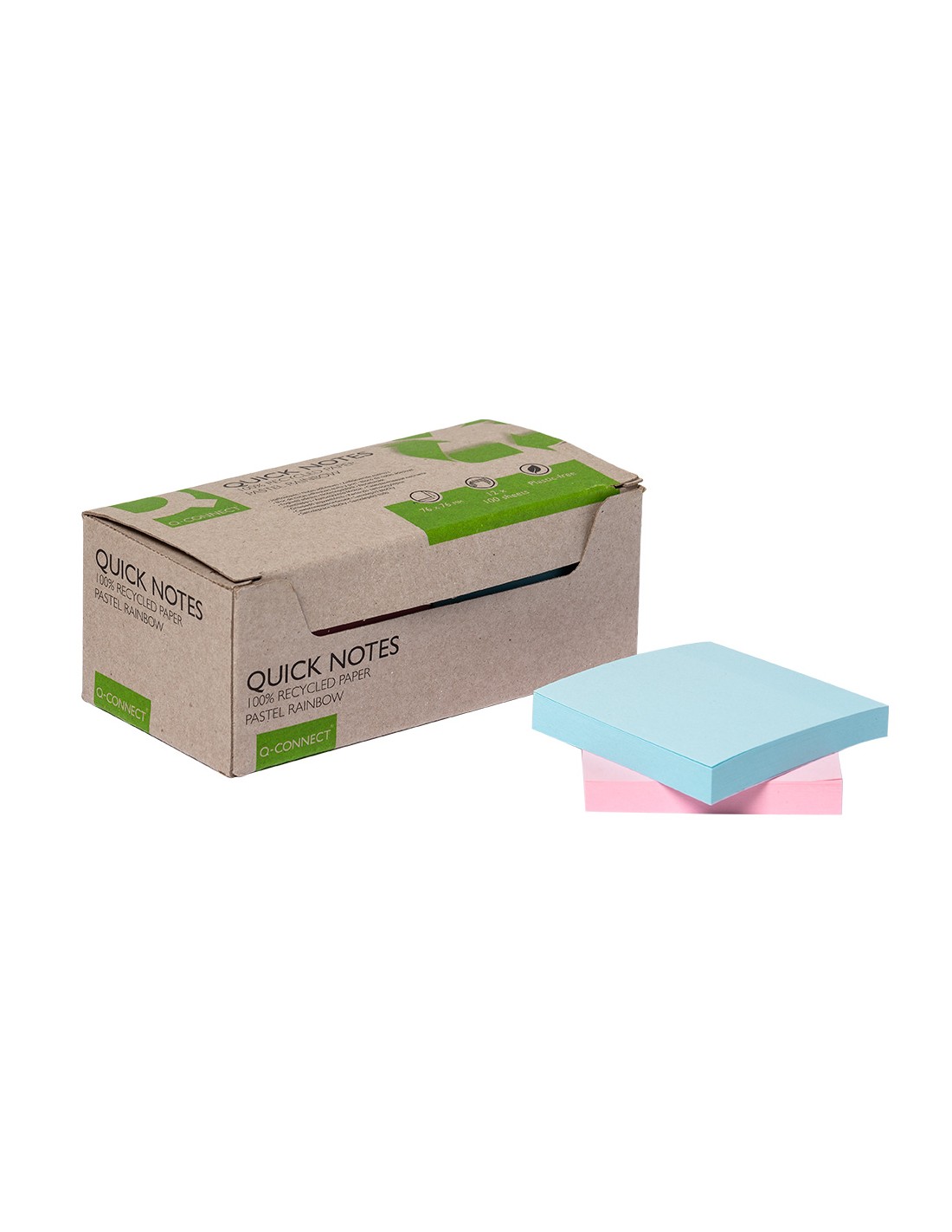 Bloc de notes adhesives lleva i pos q-connect 76x76 mm 100% paper reciclat colors pastissos en caixa de cartró