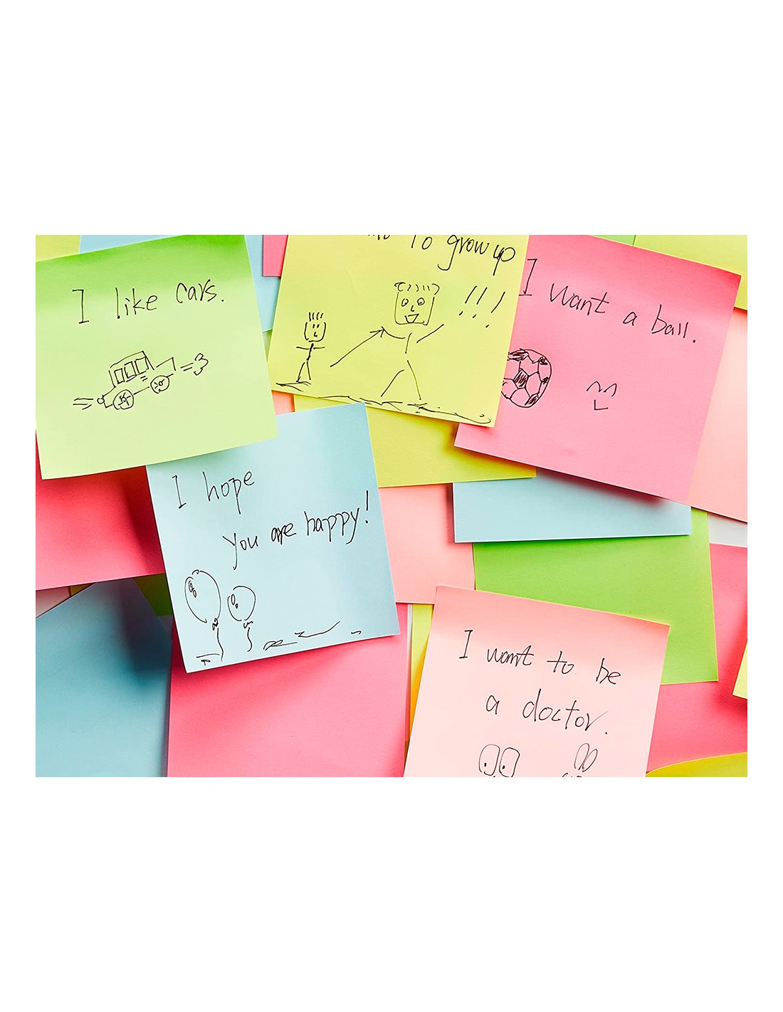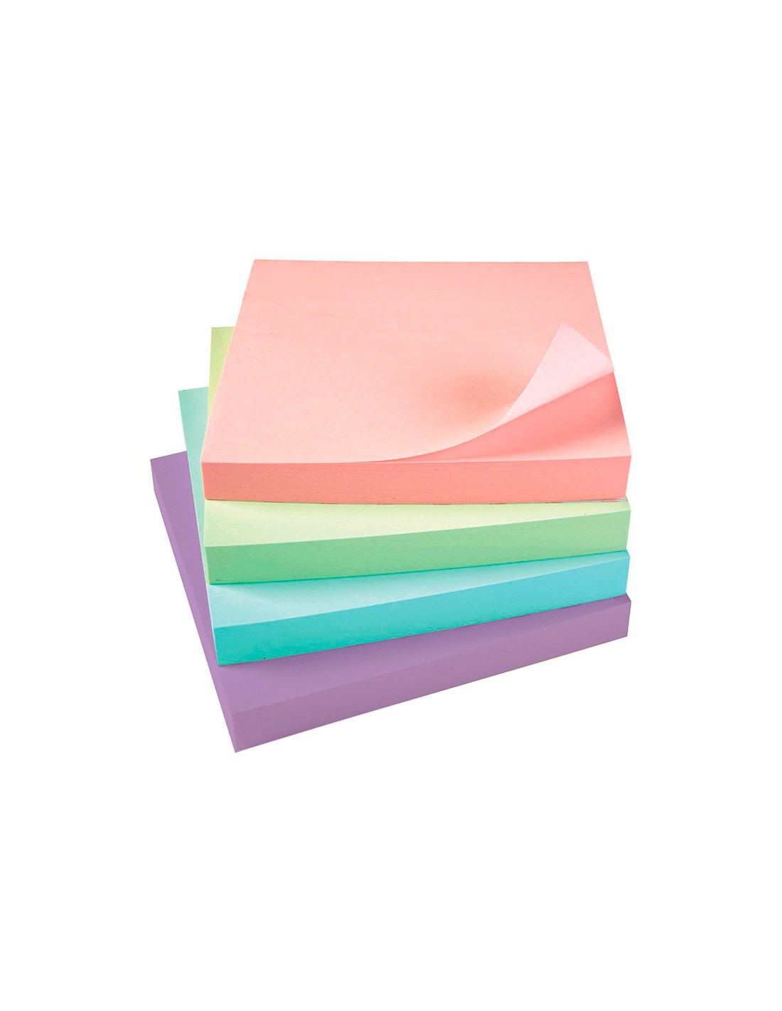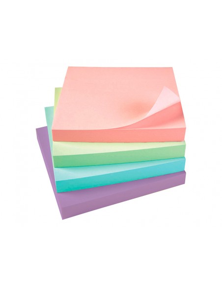 Adequades per prendre notes. Colors pastís: blau, rosa, verd i violeta. Mides: 76 x 76 mm. El bloc de 400 fulles.