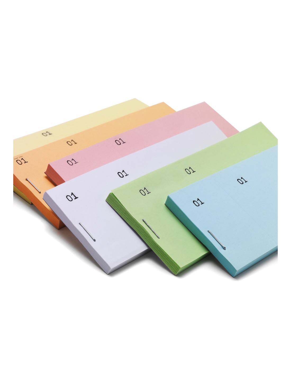 Tapa de cartonet. Grapat. Amb matriu i numerats. 100 fulles. Disponible en diferents colors. Mides 145 x 60 mm.