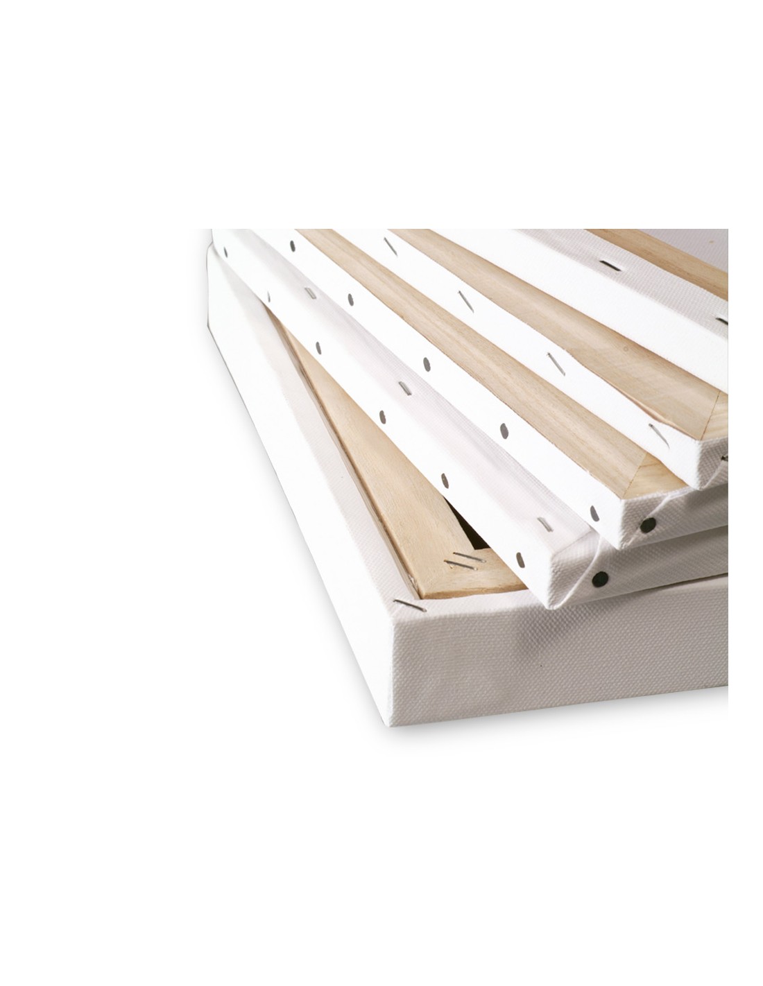 Llenç grapat de tela de cotó 100%. LIBRE de clor i àcid. 280 g/m². Apte per a acrílic i oli. Amb vores de fusta.