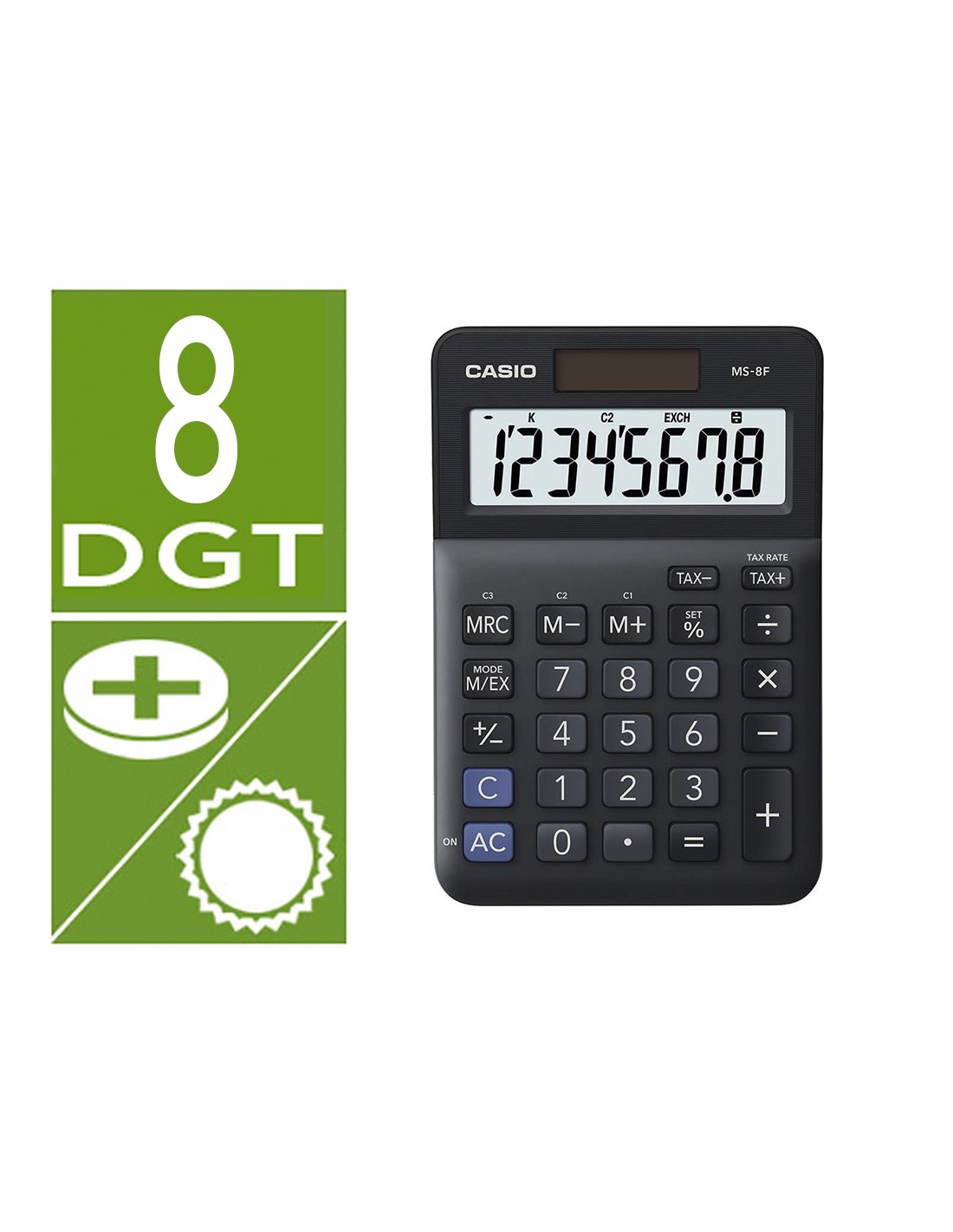 Calculadora casio ms-8f sobretaula 8 digits tax +/- color negre