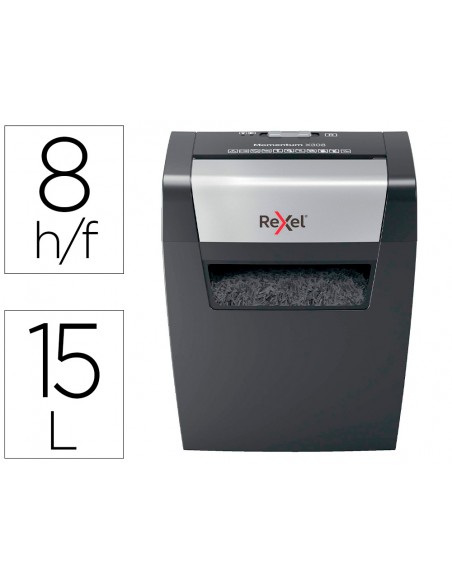 Destructora de documents rexel momentum x308 capacitat de tall 8 fulls destrueix grapes i clips 15 litres