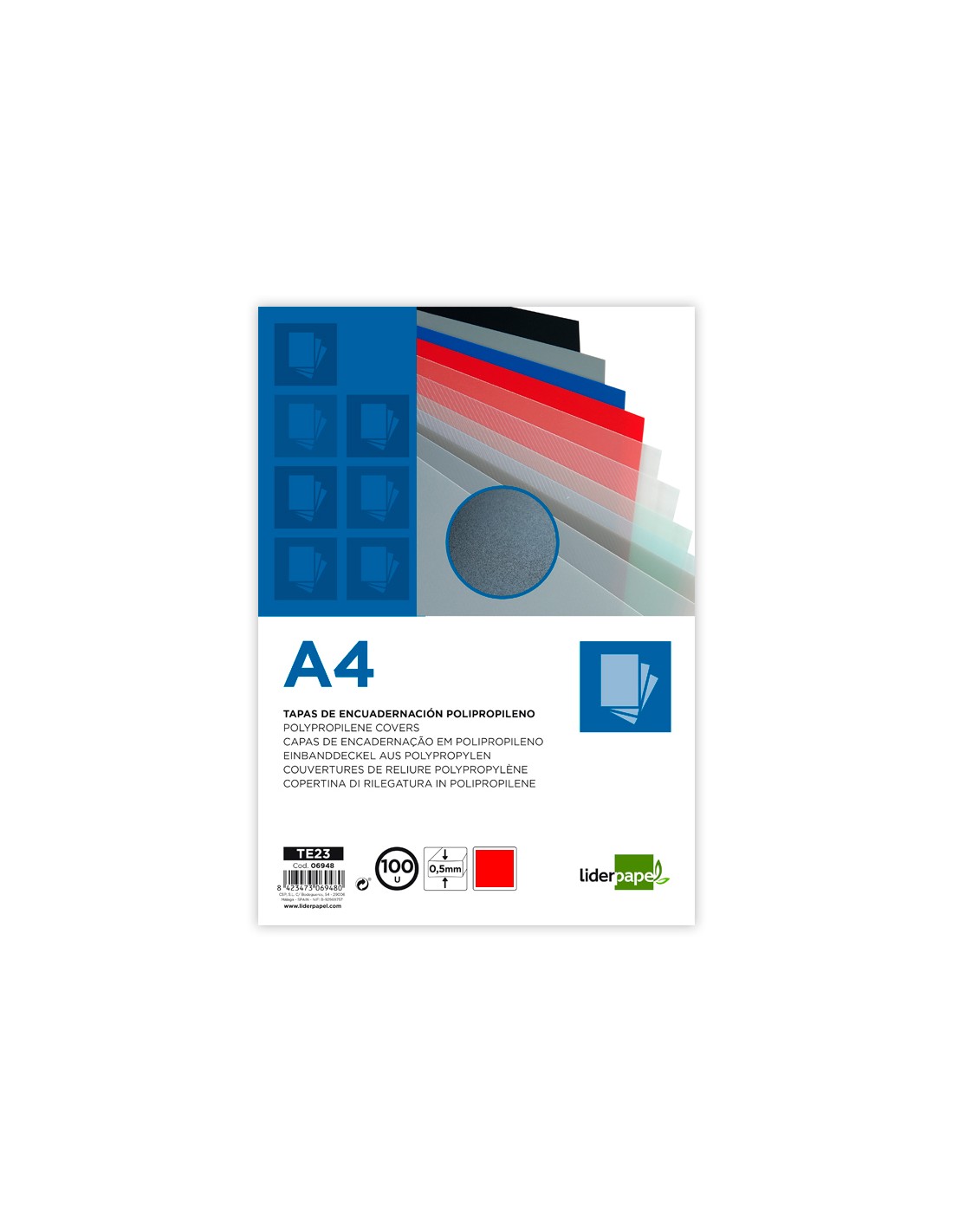 Tapa enquadernació liderpapel polipropilè a4 0.5mm vermell opac paquet de 100 unitats