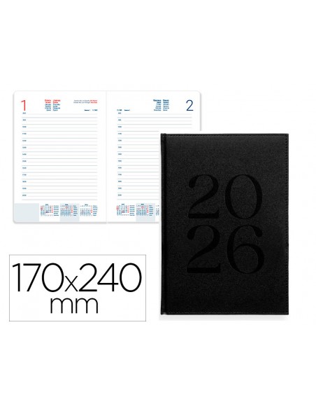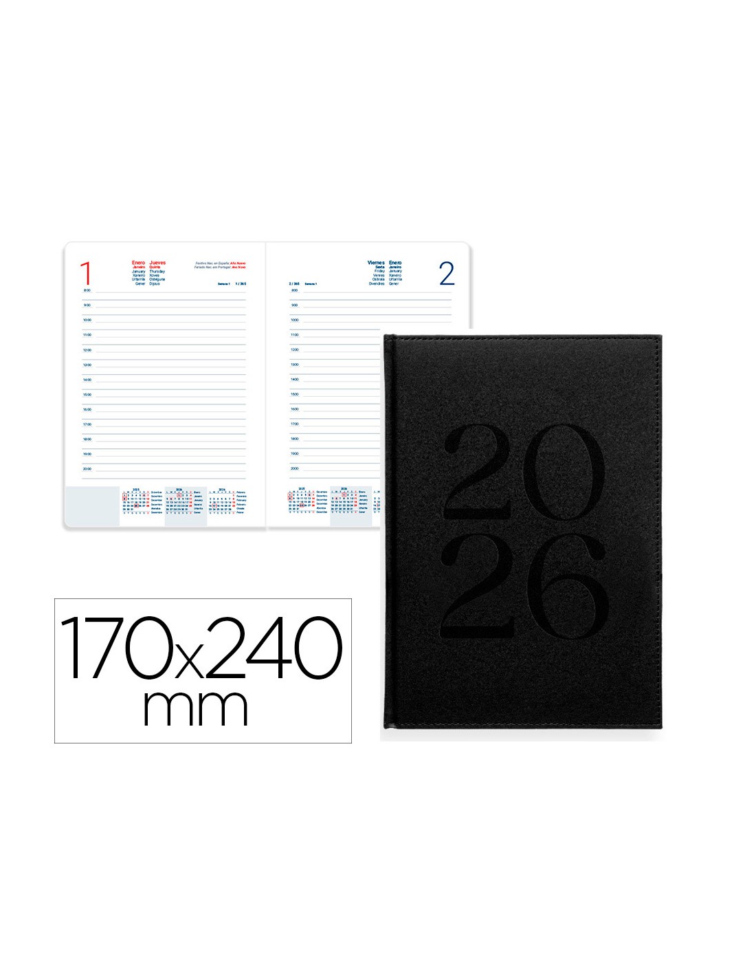 Agenda enquadernada liderpapel creta 170x240 mm 2026 dia pàgina negre paper 70 gr