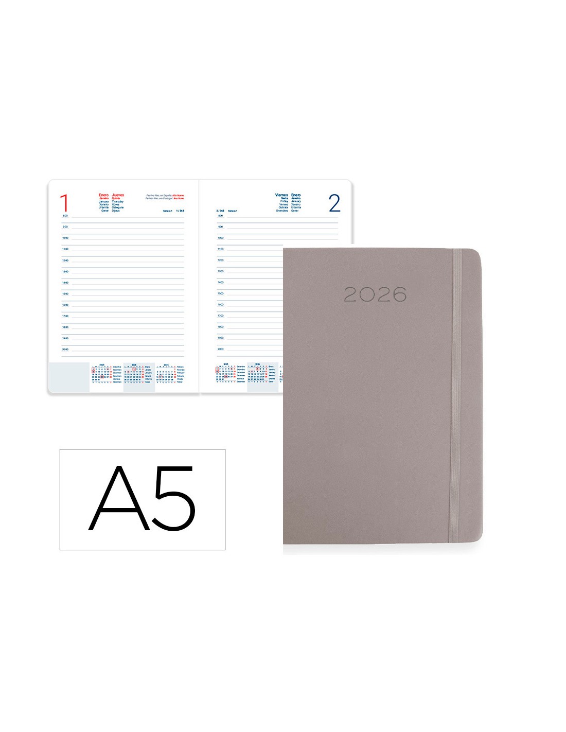 Agenda enquadernada liderpapel mykonos 150x210 mm 2026 dia pàgina design 2 (negre) paper 70 gr