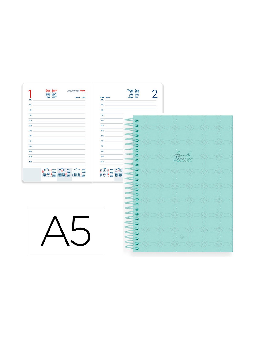 Agenda espiral liderpapel perissa a5 2026 dia pàgina design 1 paper 80 gr