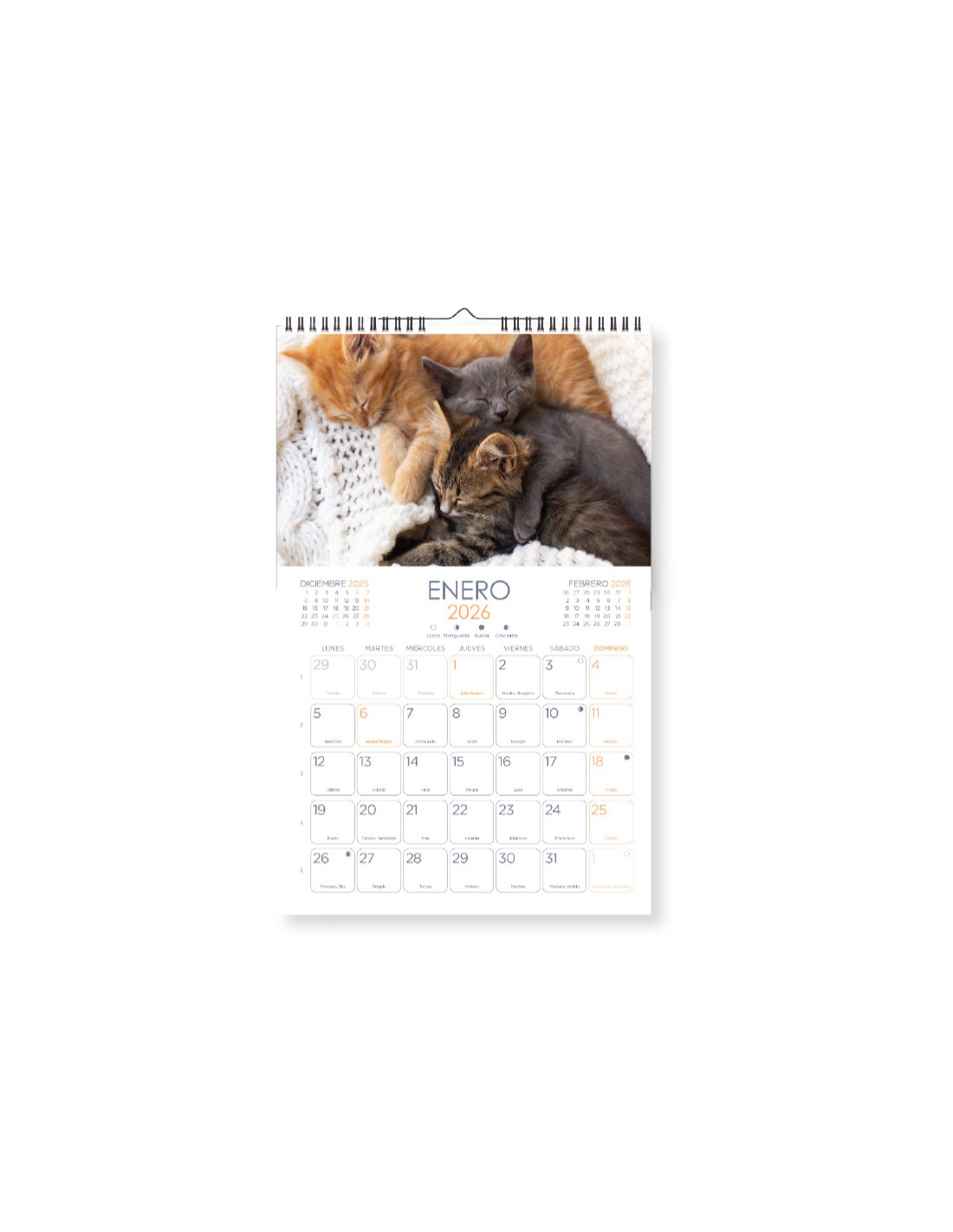 Calendari espiral paret liderpapel imatges gats 2026 per escriure 25x40 cm paper 157 gr