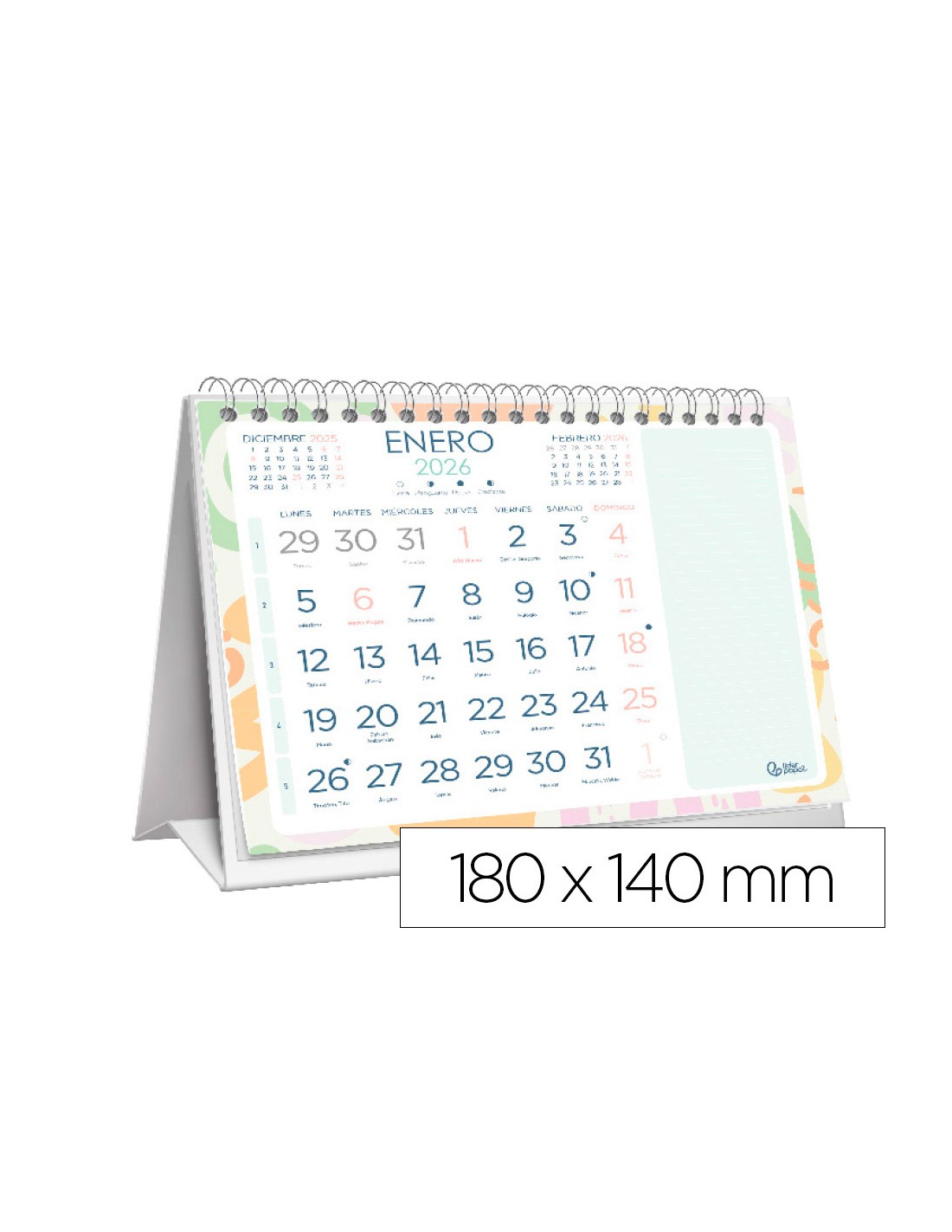 Calendari espiral triangular liderpapel de sobretaula sèrie jove 2026 18x14 cm paper 128 gr amb pegatines