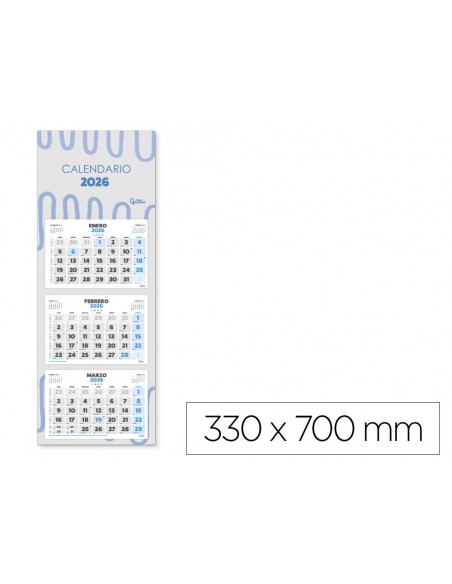 Calendari paret liderpapel 3 mesos vistes 2026 plegable 33x70 cm paper 90 gr