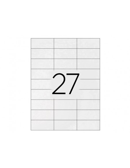 Etiquetes blanques autoadhesives adequades per a impressores ink-jet, làser i fotocopiadores. Cada caixa, segons mida, inclou 25 o 100 fulls DIN A4 en què es presenten les etiquetes.