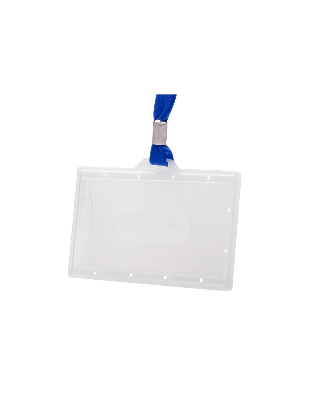 Plàstic rígid. Perfecte per a congressos, fires, empreses, etc. Se subministra amb targeta BLANCA a linterior. Mides 94 x 60 mm.